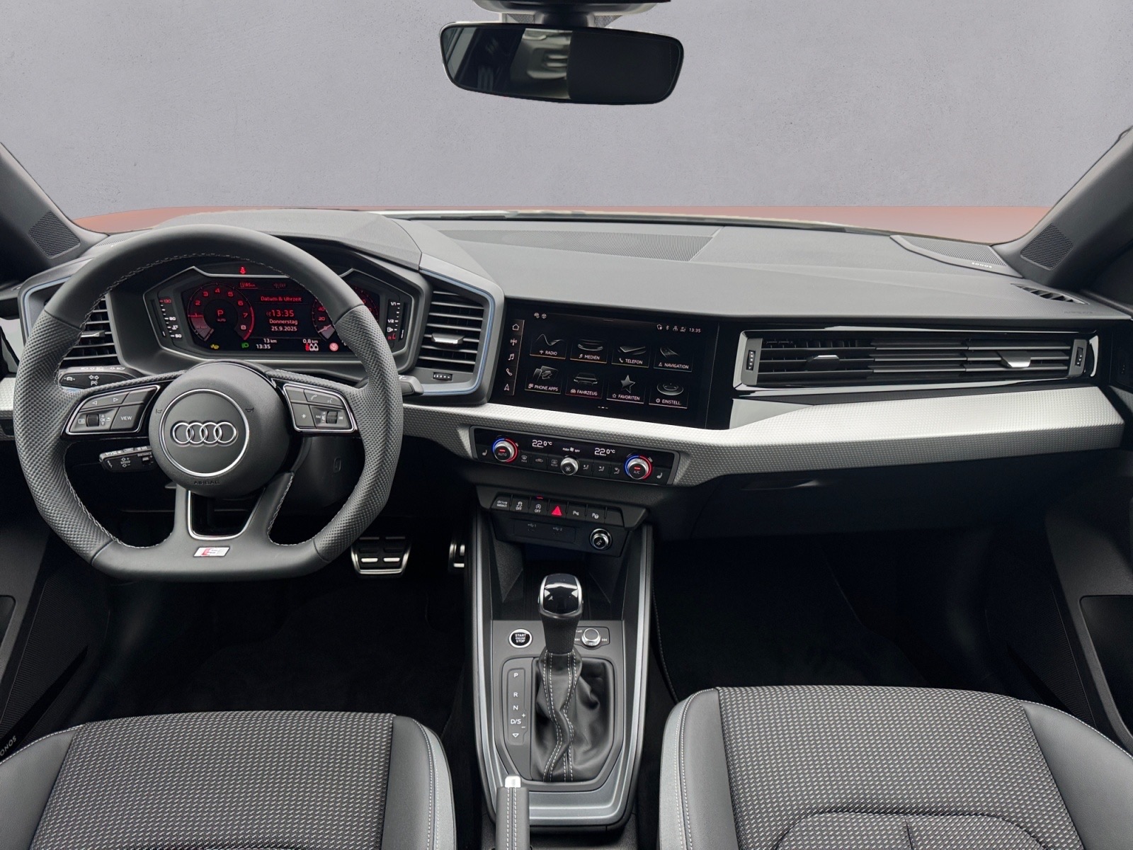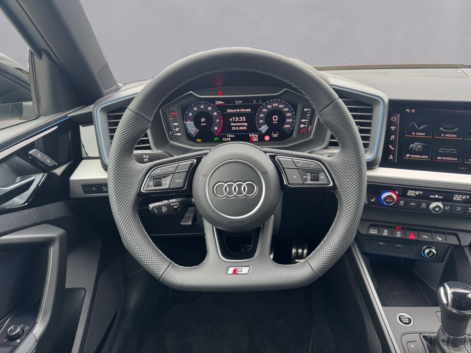 Audi drive select, Fernlichtassistent, Innenspiegel automatisch abblendend, MMI Navigation plus, Rückfahrkamera, Radschrauben mit Diebstahlsicherung, Sportkontur-Lederlenkrad 3-Speichen unten abgeflacht mit Multifunktion plus, Entfall Modellbezeichnung und Leistungs-/Technologie-Schriftzug, Komfortmittelarmlehne vorn, Außenspiegel elektrisch einstell- beheiz- und anklappbar, Interieurelemente in Kunstleder, Audi pre sense basic, Parkassistent mit Einparkhilfe plus, Spurwechselwarnung, 2-Zonen-Komfortklimaautomatik, SONOS Premium Soundsystem mit 3D-Klang, Audi phone box, Betriebserlaubnis Nachtrag, Räder Audi Sport 5-Y-Speichen schwarz Metallic glanzgedreht abgedunkelt 7 5Jx18 Reifen 215/40 R18, Mobilfunk-Signalverstärker Typ 1, Stoff Puls/Kunstleder mono.pur 550-Kombination mit S-Prägung, Adaptiver Geschwindigkeitsassistent, Exterieur S line plus, Interieurapplikationen Aluminiumoptik, Ambiente-Lichtpaket plus, Infotainmentpaket plus, Interieur S line, Audi Neuwagen-Reifengarantie, Steuerungsnummer 8, USB Type-C Power Delivery Ladekabel, Überhang hinten kurz, 5 Türen, Stabilisator vorn, Radstand, Standard, Einbau Differenzierung für Getriebe'DQ 200' -- Fahrzeugteile --, Fertigungsablauf Seat, Ohne alternativ-Antriebssystem, Mit spez.Schilder/Aufkleber/ Sicherheitszertifikate für Deutschland, Hinterachse verstärkt ( Ausführung 2), Bordliteratur in Deutsch, Gewichtsbereich 9 nur Einbausteuerung keine Bedarfsprognose, Kraftstoffsystem Otto-Einspritzer (Tropicalisiert), Aktivkohlebehälter (EVAP), spezielles Typschild EU, Reifenreparaturset, Sitzbelegungserkennung, Scheibenbremsen hinten 14 Zoll, Normalluftfilter, Bordwerkzeug, Ohne zus. Triebwerks-Unterschutz, Verbandmaterial mit Warndreieck, Fahrzeugklassen-Differenzierung-GB0/GBS-, Ohne Kühlbox/Handschuhfach-Kühlung, Frontantrieb, Differenzialsperre ( XDS ) Dynamische Traktions Hilfe, Serienkraftstoff-Erstbefüllung, Scheibenbremsen vorn 15 Zoll, Sicherheitslenksäule, Stoßfänger S line, Aufkleber/Schilder englisch-deutsch, Normalausführung, Ohne zusätzliche Bereifung, Kennzeichenträger vorn und hinten (ECE), Kindersitzbefestigung i-Size-konform auf Beifahrerseite und äußeren Fondsitzen Top Tether für äußere Fondsitze, Dach ohne Glaseinsatz, verankerung vorn (ISOFIX), Ohne Lehnenentriegelung für Vordersitze, Rücksitzlehne umklappbar, Dreip.Automatikgurte vo.m.Gurtstraffer und Höheneinstellung, Dreip.Automatikgurte hinten außen mit ECE-Label mit Straffer für EU28, Wärmeschutzverglasung Frontscheibe, Modul Boden hinten Ausführung 1, Fensterheber, Airbags vorn Beifahrerairbag deaktivierbar, Abgaskonzept WLTP3 M1 N1-I//EU6EB, Seitenairbags vorn und Kopfairbagsystem, Trägerfrequenz 433 92 bis 434 42 MHz, S line Dachkantenspoiler, Beklebung RdW, Außenspiegel rechts (großes Sichtfeld) konvex, Außenspiegel links asphärisch, Kopfstützen vorn, Ohne Feuerlöscher, Spurverlassenswarnung, Handbremshebelgriff in Leder, Ohne Wärmespeicher/Zusatzheizung, Schalt-/Wählhebelknauf, Reifendruck-Kontrollanzeige, Start-Stop-System mit Rekuperation, Ohne 2. Batterie, Drehstromgenerator 140 A, Tagfahrlicht, Heckscheiben-Wisch-Waschanlage mit Intervallschaltung, Licht-/Regensensor, Schlüssel für Schließsystem, Nebelschlussleuchten, Waschwasser-Standanzeige, Nicht Heissland, Nichtraucherausführung, Audi AG, Kategorie 0, S line, Serienqualität, Rechtsverkehr, Version (high), Typprüfland Deutschland, Bauteilesatz ohne länderspezifische Bauvorschrift, 4-Zyl. Ottomotor 1 5 L/110 KW TSI Grundmotor ist: TJ7/N09/T9F/T57/T0D, ECO-Funktion, Audi connect Remote & Control (für MMI Navigation plus), Ablenkungs- und Müdigkeitserkennung, Regionscode ' ECE ' für Radio, without Service Package, Kein Sonderfahrzeug Standard-Ausführung, Abwicklung Serie, Variante Grundausstattung, Räder der Audi Sport / Quattro GmbH, Ländergruppe A, Dämpfung vorn, S tronic, Akzentflächen schwarz glänzend, Reifen 215/40 R18 89 Y xl, Audi connect Navigation & Infotainment plus, Ottomotor, Batterie 380A (59Ah) EFB+, Sportback, Kältemittel R1234yf, Linkslenker, Federbereich 17 nur Einbausteuerung keine Bedarfsprognose, 4 Zyl.Ottomotor 1 5L Aggr. 05E.D, Steuerung SWIN, Audi connect Notruf & Service, Ohne Ablagepaket, Wartungsintervallverlängerung, Sprachdialogsystem, Serviceanzeige 30000 km oder 2 Jahre ( variabel ), Mit Multifunktionskamera für NCAPAnforderungen, Kamerabasierte Verkehrszeichenerkennung, Digitaler Radioempfang, Elektromechanische Servolenkung, Instrumenteneinsatz Anzeige in KM/H, Berganfahrassistent, Reifen ohne Festlegung der Reifenmarke, Fußgänger- und Radfahrerschutzmaßnahmen erweitert und vorausschauend, Einstiegsleisten mit Aluminiumeinlegern vorne mit S line-Schriftzug,