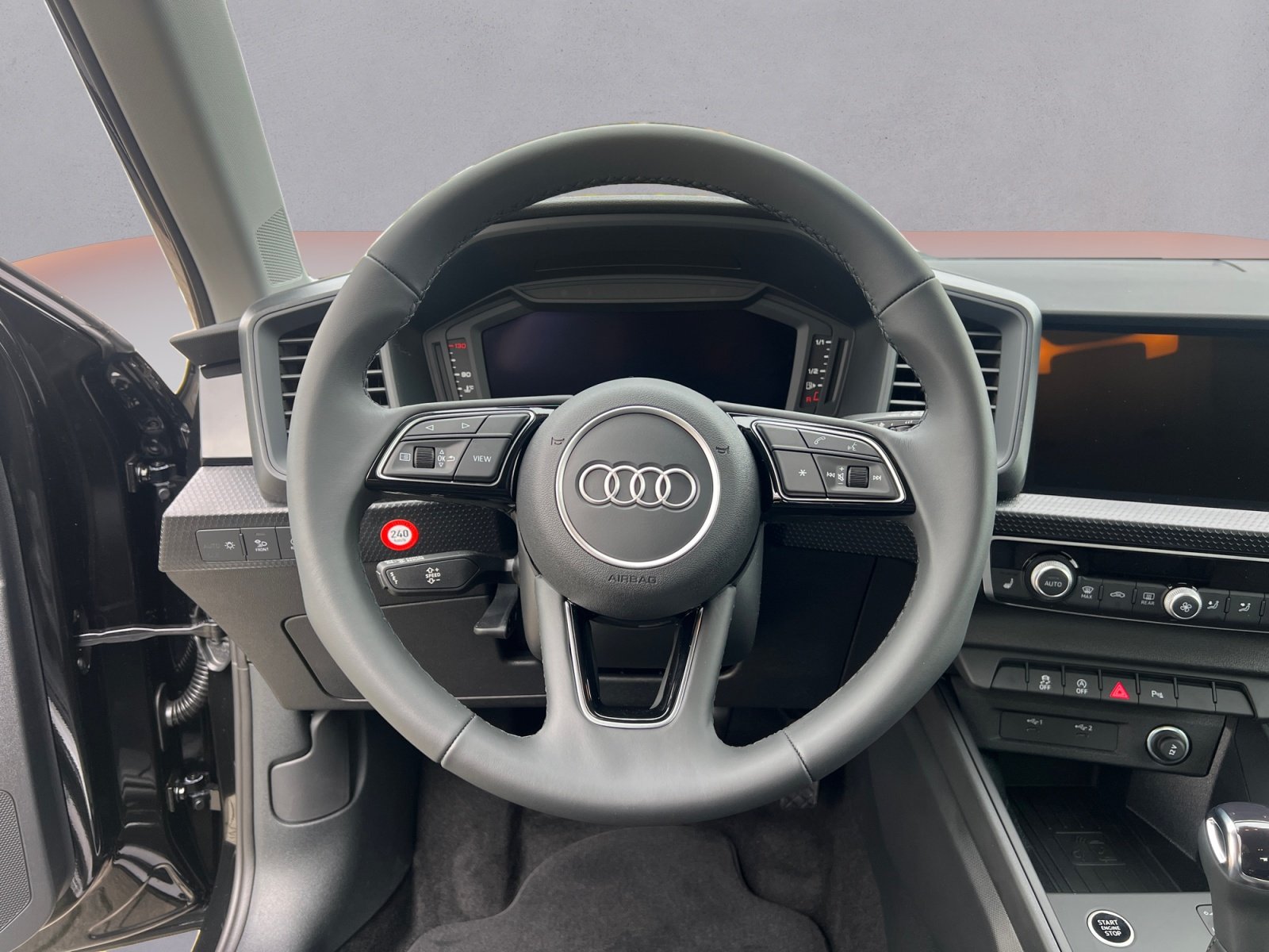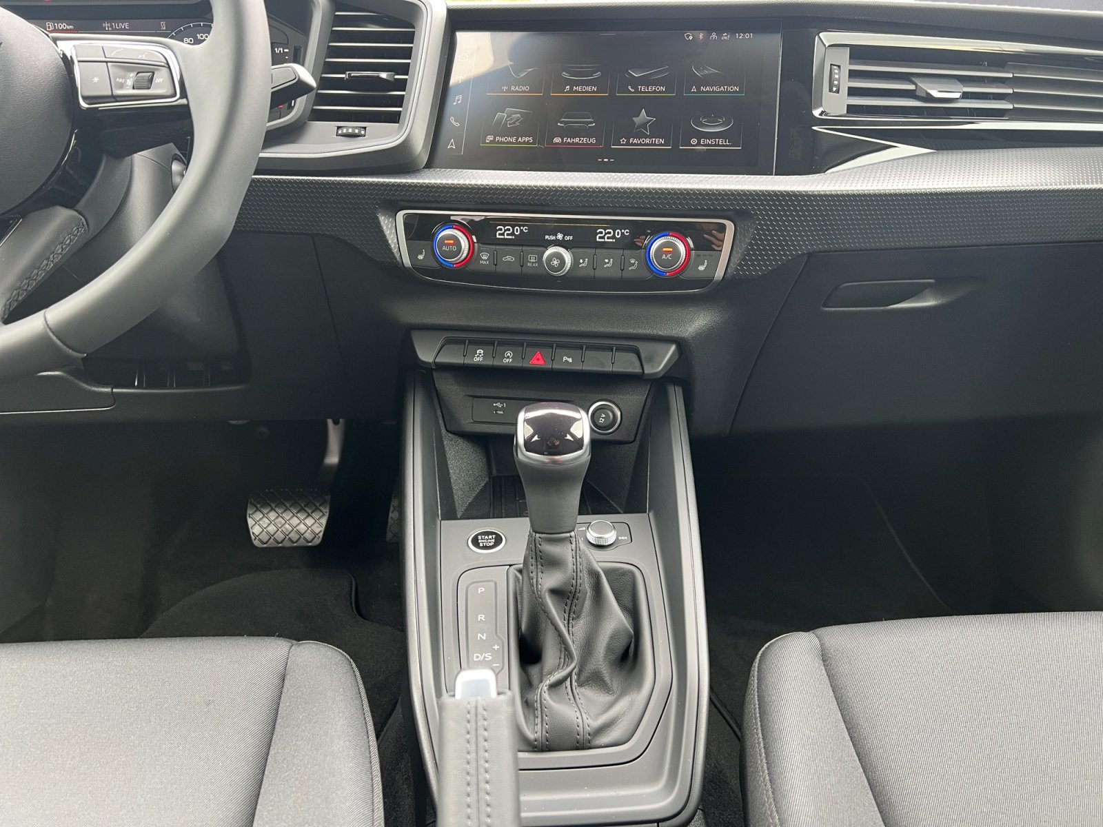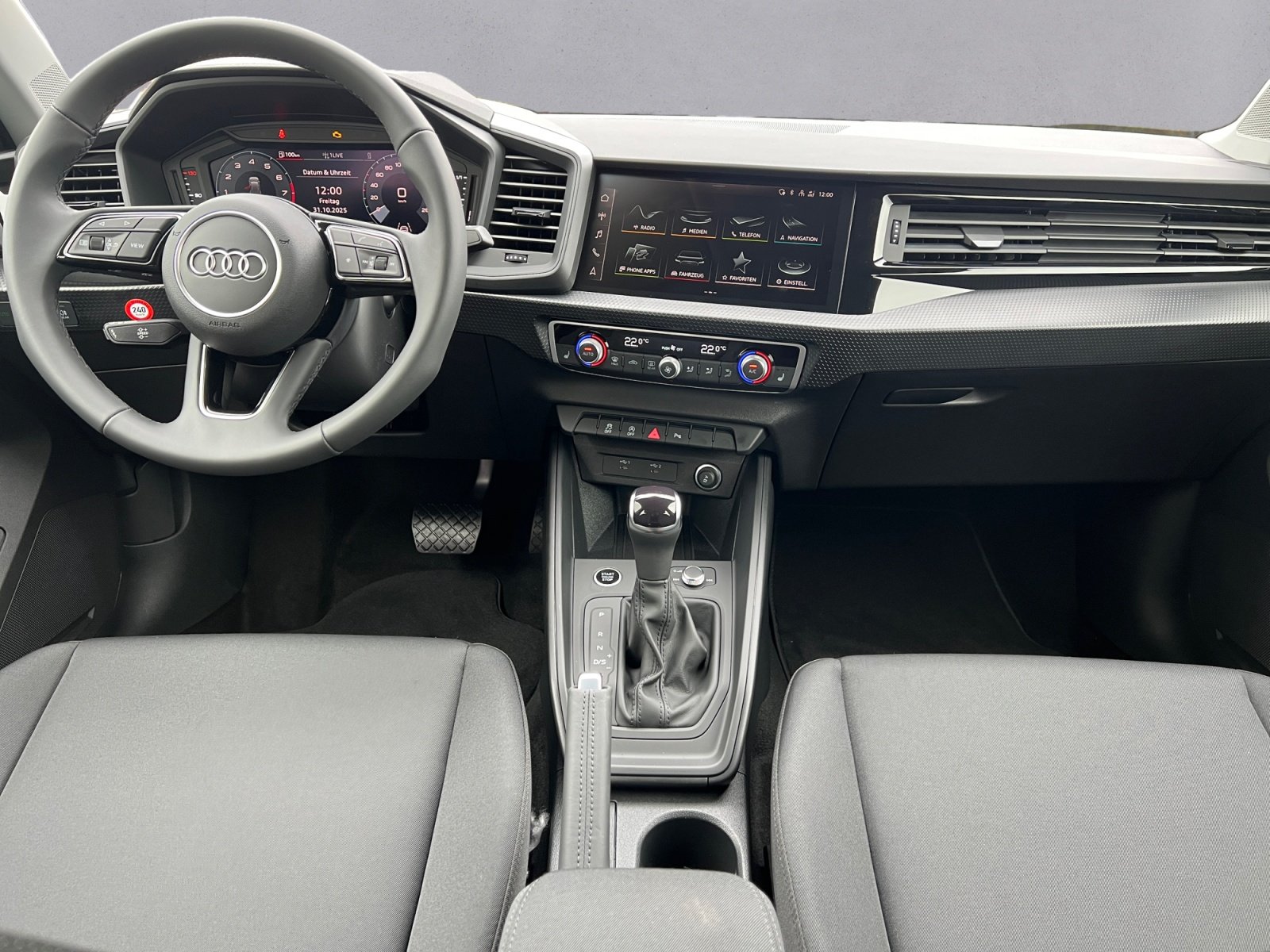 Lederlenkrad 3-Speichen mit Multifunktion plus, Komfortmittelarmlehne vorn, Außenspiegel elektrisch einstell-. beheiz- und anklappbar, Einparkhilfe plus, 2-Zonen-Komfortklimaautomatik, Audi phone box, Räder. 10-Speichen. 6.5Jx16. Reifen modellspezifisch, LED-Scheinwerfer und LED-Heckleuchten plus, Ganzjahresreifen 195/55 R 16, Infotainmentpaket plus, Audi Neuwagen-Reifengarantie, USB Type-C Power Delivery Ladekabel, Einbau Differenzierung für Getriebe'DQ 200' -- Fahrzeugteile --, Akzentflächen schwarz, Kraftstoffsystem Otto-Einspritzer (Tropicalisiert),Aktivkohlebehälter (EVAP), Sitzbelegungserkennung, Trommelbremsen hinten, Elektromechanische Servolenkung, Fahrzeugklassen-Differenzierung-GB0/GBS-,Frontantrieb, Differenzialsperre ( XDS ) Dynamische Traktions Hilfe, Scheibenbremsen vorn. 14 Zoll, Sicherheitslenksäule, Stoßfänger advanced, Kindersitzbefestigung i-Size-konform auf Beifahrerseite und äußeren Fondsitzen. Top Tether für äußere Fondsitze, Rücksitzlehne umklappbar, Dreip. Automatikgurte vo. m. Gurtstraffer und Höheneinstellung, Dreip. Automatikgurte hinten außen mit ECE-Label mit Straffer für EU28, Wärmeschutzverglasung Frontscheibe, Scheiben seitlich und hinten in Wärmeschutzverglasung, Innenspiegel abblendbar, Airbags vorn. Beifahrerairbag deaktivierbar, Abgaskonzept. WLTP3 M1. N1-I//EU6EB, Seitenairbags vorn und Kopfairbagsystem, Zierleisten schwarz, Heckspoiler, Dekoreinlagen Polygonstruktur schwarz, Dachkuppel in Wagenfarbe, Spurverlassenswarnung, Audi pre sense front, Dachhimmel in Stoff in spezifischer Farbe, Handbremshebelgriff in Leder, Reifendruck-Kontrollanzeige, Start-Stop-System mit Rekuperation, Einstiegsleisten mit Aluminiumeinlegern vorn, Vorbereitung für MMI Navigation plus, Tagfahrlicht, Heckscheiben-Wisch-Waschanlage mit Intervallschaltung, Licht-/Regensensor, Schlüssel für Schließsystem, Geschwindigkeitsbegrenzer, Nebelschlussleuchten, advanced, Typprüfland Deutschland, 3-Zylinder-Ottomotor 1.0 L/70 KW TSI Grundmotor ist: TJ4/TC5/T26/T0M, Audi connect Remote & Control (für MMI Navigation plus), Ablenkungs- und Müdigkeitserkennung, S tronic, Akzentflächen schwarz glänzend, Top-Infotainment High (MIB3), Audi connect Navigation & Infotainment plus, Ottomotor, Batterie 380A (59Ah) EFB+, Sportback, Audi connect Notruf & Service, Wartungsintervallverlängerung, Sprachdialogsystem, Serviceanzeige 30000 km oder 2 Jahre ( variabel ), Mit Multifunktionskamera für NCAPAnforderungen, Innenbeleuchtung, Kamerabasierte Verkehrszeichenerkennung, Digitaler Radioempfang, 3 Zyl.Ottomotor 1.0L Aggr. 05C.B, Instrumenteneinsatz. Anzeige in KM/H, Berganfahrassistent, Fußgänger- und Radfahrerschutzmaßnahmen erweitert und vorausschauend