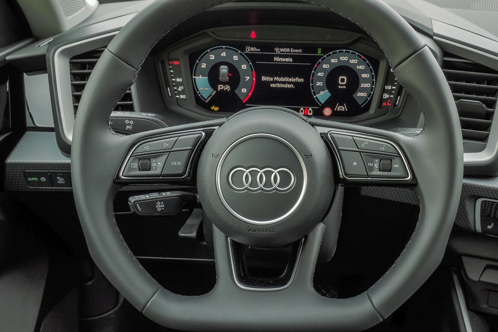Akzentflächen Diamantlack silbergrau, Sportkontur-Lederlenkrad 3-Speichen unten abgeflacht mit Multifunktion plus, Sonnenschutzverglasung abgedunkelt, Innenspiegel automatisch abblendend, Dekoreinlagen Polygonstruktur Feinlack schiefergrau, Komfortmittelarmlehne vorn, Außenspiegelgehäuse in Wagenfarbe, Außenspiegel elektrisch einstell- beheiz- und anklappbar, Einparkhilfe plus, 2-Zonen-Komfortklimaautomatik, Audi phone box, Betriebserlaubnis Nachtrag, Räder 5-Arm-Stern 7 5Jx17 Reifen 215/45 R17, LTE-Unterstützung für Audi phone box, Stoff Derby, Sportsitze vorn, LED-Scheinwerfer und LED-Heckleuchten plus, Ambiente-Lichtpaket, GSP - CN, Infotainmentpaket plus, Audi Neuwagen-Reifengarantie, Steuerungsnummer 8, Überhang hinten kurz, 5 Türen, Stabilisator vorn, Radstand, Standard, Einbau Differenzierung für Getriebe'DQ 200' -- Fahrzeugteile --, Fertigungsablauf Seat, Ohne alternativ-Antriebssystem, Mit spez.Schilder/Aufkleber/ Sicherheitszertifikate für Deutschland, Hinterachse verstärkt ( Ausführung 2), Fußmatten vorn und hinten, Bordliteratur in Deutsch, Gewichtsbereich 8 nur Einbausteuerung keine Bedarfsprognose, Kraftstoffsystem Otto-Einspritzer (Tropicalisiert), Aktivkohlebehälter (EVAP), spezielles Typschild EU, Reifenreparaturset, Sitzbelegungserkennung, Scheibenbremsen hinten 14 Zoll, Normalluftfilter, Radschrauben Standard, Bordwerkzeug, Ohne zus. Triebwerks-Unterschutz, Verbandmaterial mit Warndreieck, Fahrzeugklassen-Differenzierung-GB0/GBS-, Ohne Kühlbox/Handschuhfach-Kühlung, Frontantrieb, Differenzialsperre ( XDS ) Dynamische Traktions Hilfe, Serienkraftstoff-Erstbefüllung, Scheibenbremsen vorn 15 Zoll, Sicherheitslenksäule, Stoßfänger S line, Aufkleber/Schilder englisch-deutsch, Normalausführung, Ohne zusätzliche Bereifung, Modellbezeichnung gemäß neuer Leistungskennzeichnung, Kennzeichenträger vorn und hinten (ECE), Kindersitzbefestigung i-Size auf der Beifahrerseite und i-Size und Top Tether auf den äußeren Fondsitzen, Dach ohne Glaseinsatz, verankerung vorn (ISOFIX), Ohne Lehnenentriegelung für Vordersitze, Rücksitzlehne umklappbar, Dreip.Automatikgurte vo.m.Gurtstraffer und Höheneinstellung, Dreip.Automatikgurte hinten außen mit ECE-Label mit Straffer für EU28, Wärmeschutzverglasung Frontscheibe, Modul Boden hinten Ausführung 1, Fensterheber, Airbags vorn Beifahrerairbag deaktivierbar, Abgaskonzept WLTP3 M1 N1-I//EU6EB, Seitenairbags vorn und Kopfairbagsystem, Zierleisten schwarz, Trägerfrequenz 433 92 bis 434 42 MHz, S line Dachkantenspoiler, Beklebung RdW, Außenspiegel rechts (großes Sichtfeld) konvex, Außenspiegel links asphärisch, Kopfstützen vorn, Ohne Feuerlöscher, Ohne Dekorfolien/Embleme, Dachkuppel in Wagenfarbe, Spurverlassenswarnung, Audi pre sense front, Dachhimmel in Stoff in spezifischer Farbe, Handbremshebelgriff in Leder, Ohne Wärmespeicher/Zusatzheizung, Schalt-/Wählhebelknauf, Ohne Belederung, Reifendruck-Kontrollanzeige, Start-Stop-System mit Rekuperation, Vorbereitung für MMI Navigation plus, Ohne erweitertem Sicherheitssystem, Ohne 2. Batterie, Drehstromgenerator 140 A, Tagfahrlicht, Heckscheiben-Wisch-Waschanlage mit Intervallschaltung, Licht-/Regensensor, Schlüssel für Schließsystem, Nebelschlussleuchten, Waschwasser-Standanzeige, Nicht Heissland, Nichtraucherausführung, Audi AG, Kategorie 0, S line, Serienqualität, Rechtsverkehr, Version (high), Typprüfland Deutschland, Bauteilesatz ohne länderspezifische Bauvorschrift, 3-Zylinder-Ottomotor 1 0 L/85 KW TSI Grundmotor ist: TJ4/T0R/T26/T0M/T1D, Keine Aktionsausführung, Ohne ECO-Funktion, Audi connect Remote & Control (für MMI Navigation plus), Ablenkungs- und Müdigkeitserkennung, Regionscode ' ECE ' für Radio, without Service Package, Kein Sonderfahrzeug Standard-Ausführung, Abwicklung Serie, Variante Grundausstattung, Räder der Serie, Ländergruppe A, Dämpfung vorn, S tronic, Akzentflächen schwarz glänzend, Reifen 215/45 R17 91W xl, Top-Infotainment High (MIB3), Audi connect Navigation & Infotainment plus, Ottomotor, Batterie 380A (59Ah) EFB+, Sportback, Ohne Kamerasysteme/Umfeldsensorik, Kältemittel R1234yf, Linkslenker, Federbereich 16 nur Einbausteuerung keine Bedarfsprognose, Steuerung SWIN, Audi connect Notruf & Service, Ohne Ablagepaket, Wartungsintervallverlängerung, Sprachdialogsystem, Serviceanzeige 30000 km oder 2 Jahre ( variabel ), Ohne Interieurapplikationen, Mit Multifunktionskamera für NCAPAnforderungen, Kamerabasierte Verkehrszeichenerkennung, Digitaler Radioempfang, Elektromechanische Servolenkung, 3 Zyl.Ottomotor 1 0L Aggr. 05C.B, Instrumenteneinsatz Anzeige in KM/H, Berganfahrassistent, Reifen ohne Festlegung der Reifenmarke, Fußhebelwerk 'Standard', Fußgänger- und Radfahrerschutzmaßnahmen erweitert und vorausschauend, Einstiegsleisten mit Aluminiumeinlegern vorne mit S line-Schriftzug, Laufendes Kundenersatzfahrzeug!,