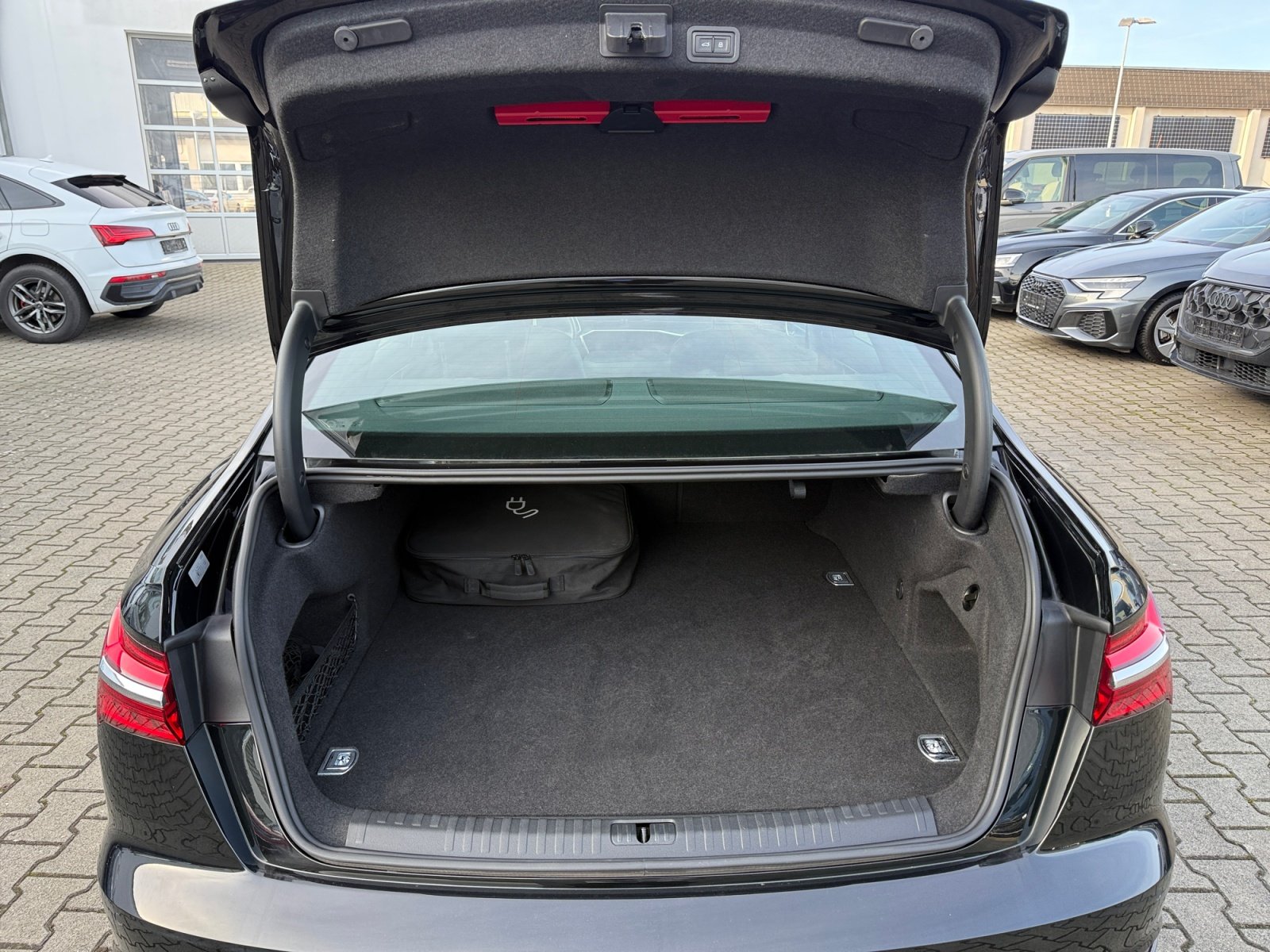 Panorama-Glasdach, Matrix LED-Scheinwerfer und LED-Heckleuchten und Scheinwerfer-Reinigungsanlage, Rückfahrkamera, Einparkhilfe plus mit Umgebungsanzeige, Vordersitze elektrisch einstellbar mit , 4-Zonen-Komfortklimaautomatik, Leder/Kunstleder mono.pur 550-Kombination, Doppelspeichen-Lederlenkrad mit Multifunktion Schaltwippen und Lenkradheizung, Komfortschlüssel mit sensorgesteuerter Gepäckraumentriegelung, Kreuzungsassistent, Fahrwerk mit Dämpferregelung, Komfortschlüssel mit sensorgesteuerter Gepäckraumentriegelung ohne Safelock, variable Kopfstützen für die Vordersitze, Außenspiegel elektrisch einstell- beheiz- und anklappbar beidseitig automatisch abblendend mit Memoryfunkt., Head-up-Display, Kamerabasierte Verkehrszeichenerkennung, 4-Wege-Lendenwirbelstütze für die Vordersitze, Gepäckraumklappe elektrisch öffnend undschließend, Audi phone box, Adaptiver Fahrassistent mit Notfallassistent, Ambiente-Lichtpaket plus, Audi pre sense rear, Spurwechselwarnung mit Ausstiegswarnung und Querverkehrassistent hinten, Interieurelemente oben und unten in Kunstleder, LTE-Unterstützung für Audi phone box, Dachhimmel in Stoff schwarz, Adaptiver Geschwindigkeitsassistent mit Geschwindigkeitsbegrenzer Effizienz- Ausweich- und Abbiegeassistent, Vorbereitung für Functions on Demand, MMI Navigation plus mit MMI touch response, Schalt-/Wählhebelknauf, Reifendruck-Kontrollanzeige, quattro (mit ultra Technologie), Kindersitzbefestigung ISOFIX und Top Tether für die äußeren Fondsitze, Einstiegsleisten mit Aluminiumeinlegern vorne und hinten, Audi music interface, quattro, Audi pre sense front, Sitzbelegungserkennung, Audi drive select, Kraftstoffsystem Otto-Direkteinspritzung(FSI), Start-Stop-System, Abgaskonzept EU6 AP, E-Motor (Hybrid) Systemleistung 220KW Aggr.0ED.D, Airbags vorn Beifahrerairbag deaktivierbar, 4-Zylinder-Ottomotor 2 0 L/195 kW Hybrid Turbo FSI Systemleistung 220 kW Grundmotor ist: T4H, Komfortmittelarmlehne vorn, Seitenairbags vorn und Kopfairbagsystem, Hybrid-Antriebssystem PHEV, Geschwindigkeitsbegrenzungsanlage, 4 Zyl.Ottomotor 2 0L Aggr. 06N.E, S tronic (für Allrad), Audi connect Notruf & Service mit Audi connect Remote & Control, Audi Soundsystem, Sicherheitslenksäule, Smartphone-Interface, Progressivlenkung, Digitaler Radioempfang, Tagfahrlicht, Audi virtual cockpit, Fußgängerschutzmaßnahmen erweitert,