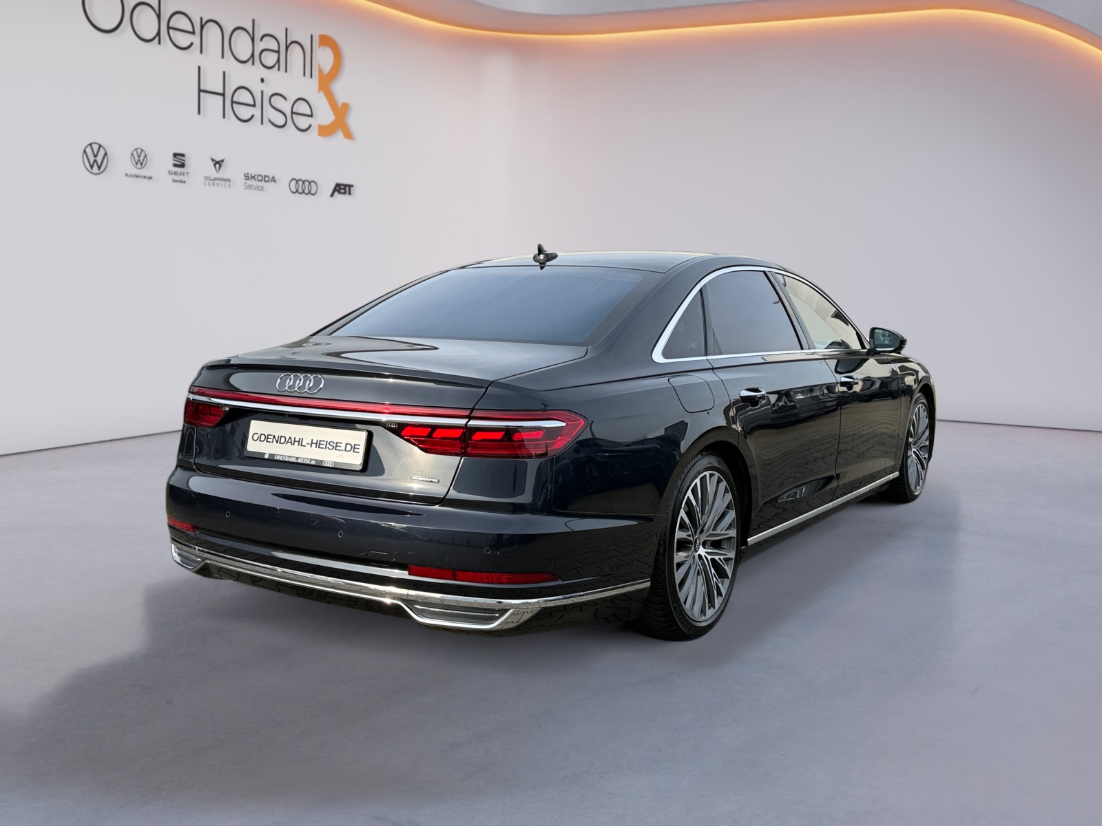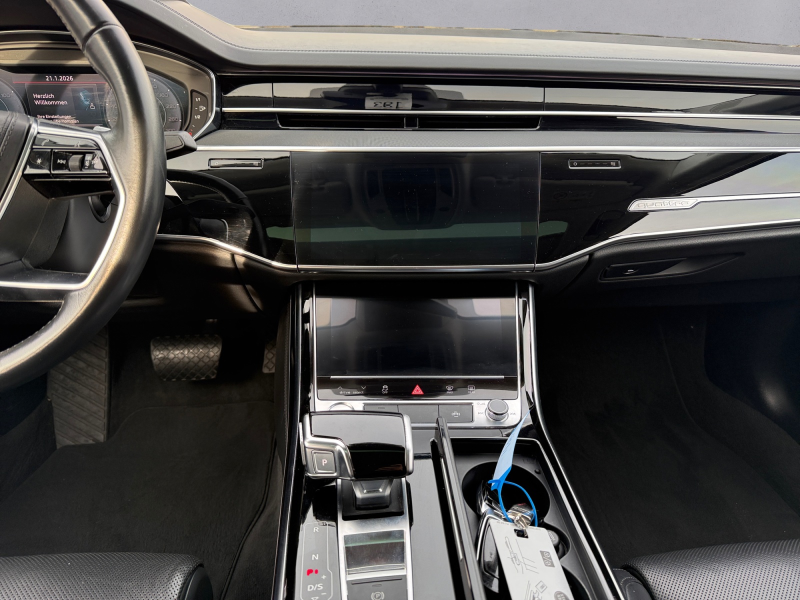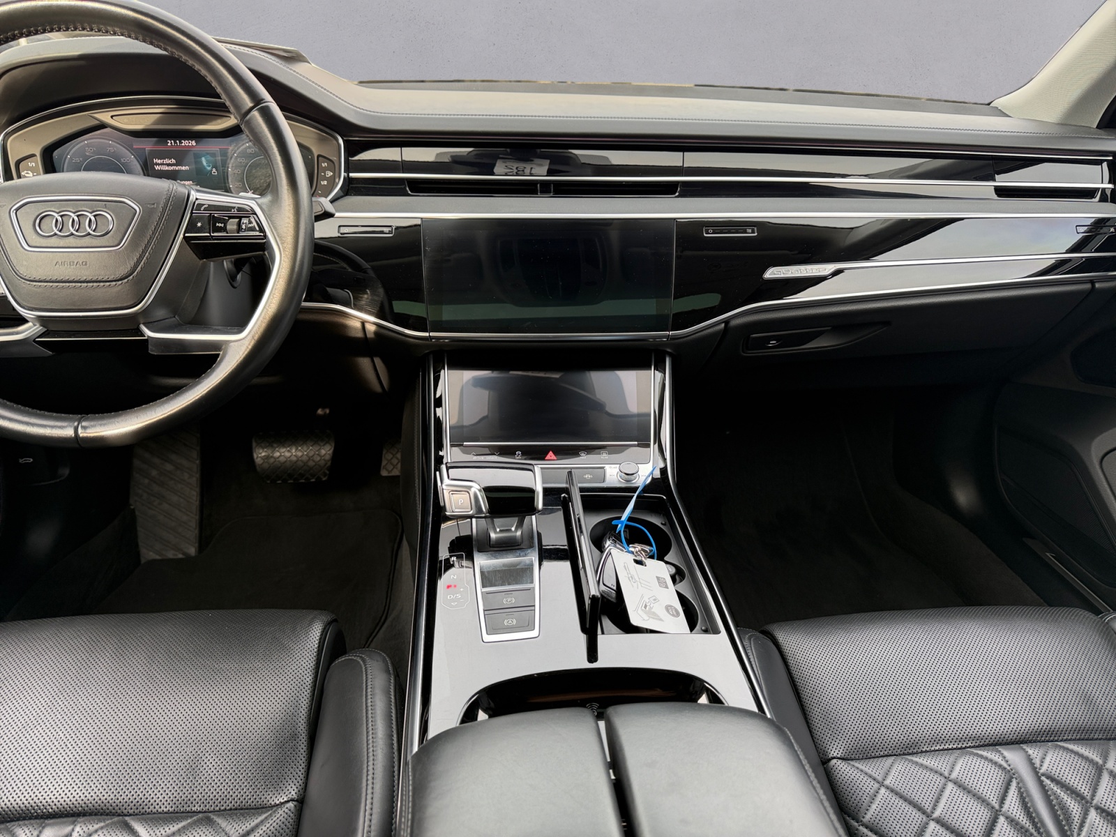 Doppelspeichen-Lederlenkrad mit Multifunktion Schaltwippen und Lenkradheizung, obere Dekoreinlagen Klavierlack schwarz, Bang & Olufsen Premium Sound System mit 3D-Klang, Komfort-Individualkontursitz-Paket in Sportoptik, Sitzbelüftung und Massagefunktion vorn und hinten, Assistenzpaket Stadt, Kreuzungsassistent, Matrix-LED-Leseleuchten, Lendenwirbelstütze für die Vordersitze und die äußeren Fondsitze elektrisch, Panorama-Glasdach (zweiteilig), Audi music interface im Fond, Klimakomfort-/Akustikverglasung (Paketinhalt), digitaler TV-Empfang mit CI+ PayTV-System und digitaler Radioempfang, Reifendruck-Kontrollsystem, erweiterte Dekorelemente in Klavierlack schwarz, Wählhebelknauf in Klavierlack schwarz, Außenspiegel elektrisch einstell- beheiz- und anklappbar beidseitig automatisch abblendend mit Memory-Funktion Bordsteinautomatik für Beifahreraußenspiegel, erweitertes Lederpaket, Umgebungskameras, Head-up Display, DVD-Laufwerk, Fondsitz-Paket Einzelsitze (2 + 1 Sitze), Rear Seat Remote, Komfortkopfstützen hinten, Fondsitz-Paket Einzelsitze (2 + 1 Sitze), Kontur-Ambiente-Lichtpaket (mehrfarbig regelbar), Audi pre sense rear und basic, Sicherheitspaket, Komfort-Individualkontursitz-Paket in Sportoptik, Servoschließung für die Türen, Komfortmittelarmlehne vorn, Durchladeeinrichtung, Audi side assist Spurwechselassistent, Telefonie im Fond inklusive Audi phone box , elektrische Sitzeinstellung für beide Vordersitze mit Memory-Funktion, Einparkhilfe plus mit Umgebungsanzeige, Technologie-Paket better vision, OLED-Heckleuchten, Klimakomfort- und Akustikverglasung, Audi smartphone interface, Sitzheizung vorn und hinten, Lederausstattung Valcona, 230-Volt-Steckdose, HD Matrix-LED-Scheinwerfer mit Audi Laserlicht, adaptive air suspension, Frontscheibe in Klimakomfort- und Akustikverglasung drahtlos beheizbar, Umgebungskameras, MMI Navigation plus mit MMI touch response, Sonnenblende mit Make-up-Spiegel beleuchtet, tiptronic, kamerabasierende Verkehrszeichenerkennung, Dachhimmel in Stoff, 4-Zonen-Komfortklimaautomatik, Doppelton-Signalhorn, Stufenheck (langer Radstand), Audi pre sense front, Gepäckraumklappe elektrisch öffnend und schließend, automatische Umluftregelung, Chrom-Exterieurpaket, Scheinwerfer-Reinigungsanlage, Diebstahlwarnanlage mit Abschleppschutz, Deaktivierungsschalter für Beifahrer-Airbag, Handschuhfachkühlung, Bedientasten Glasoptik schwarz mit haptischem Feedback, Audi phone box, adaptiver Fahrassistent mit Notfallassistent, Assistenzpaket Tour, untere Dekoreinlagen Feinlack graphitgrau, Gurtkontrolle, Hybrid-Antriebssystem PHEV, Abgaskonzept EU6 DG, Kindersitzbefestigung ISOFIX und Top Tether für die äußeren Fondsitze, 6-Zylinder-Ottomotor 3 0L/250 KW TFSI Grundmotor ist: T9I, MMI Radio Plus mit MMI touch response, Tagfahrlicht, Sonnenschutzrollos elektrisch für die Heckscheibe und die hinteren Seitenscheiben, Komfortschlüssel mit sensorgesteuerter Gepäckraumentriegelung (mit Safelock), Audi virtual cockpit, Fußgängerschutzmaßnahmen erweitert, quattro mit selbstsperrendem Mittendifferenzial,