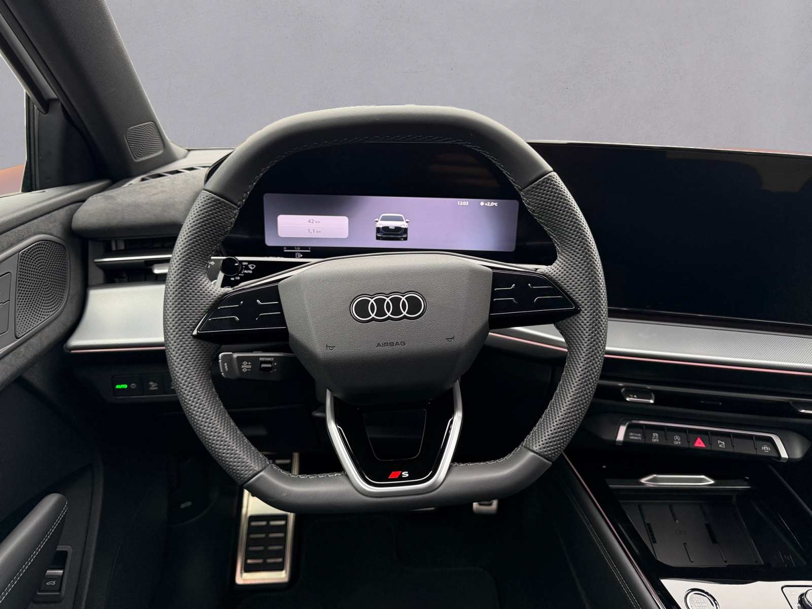Vorbereitung für Anhängevorrichtung, Radschrauben diebstahlhemmend, Sportlederlenkrad. 3-Speichen. oben und unten abgeflacht mit Multifunktion und Schaltwippen, Erhöh.der Serienkraftstofferstbefüllung, Panorama-Schiebedach, Räder Audi Sport. 5-Arm-Dynamic. grau seidenmatt. glanzgedreht. 8.5Jx19. Reifen 255/45 R19, Komfortschlüssel mit Safelock, Dekoreinlage Aluminium Divergenz dunkel, Diebstahlwarnanlage, Fernlichtassistent, Scheinwerfer-Reinigungsanlage, Telefonablage mit induktiver Ladefunktion und Mobilfunk-Koppelantenne, Betriebserlaubnis Nachtrag, Mobilfunk-Signalverstärker Typ 1, Exterieurpaket schwarz, Tech plus, Interieur S line mit Sportsitzen in Leder/Kunstleder-Kombination schwarz, LED-Scheinwerfer plus und LED-Heckleuchten pro, Exterieur S line, Dynamikpaket, Klimatisierungspaket plus, Funktionspaket, Sonnenschutzverglasung abgedunkelt, Einführungsvolumen, Audi Neuwagen-Reifengarantie, Steuerungsnummer 8, Anlaufvariante C, Stabilisator vorn, Radstand, Stabilisator hinten, Fertigungsablauf Standard, Einbau Differenzierung für Getriebe'DQ381' -- Fahrzeugteile --, Mild-Hybrid, Mit speziellem Aufkleber, Mit spez.Schilder/Aufkleber/ Sicherheitszertifikate für Deutschland,Fußmatten vorn und hinten, Bordliteratur in Deutsch, Gewichtsbereich 10 nur Einbausteuerung keine Bedarfsprognose, Kraftstoffsystem Otto-Einspritzer, BRS für Fahrzeuge mit E-Antrieb (ESC und eBKV), Aktivkohlebehälter (EVAP), spezielles Typschild EU, Reifenreparaturset, Sitzbelegungserkennung, Abdeckungen für Leichtmetallräder,Verbandmaterial. Warndreieck und Warnweste,Einbauteile f.4 Zyl.Motore, Frontantrieb, Audi drive select, Aufkleber/Schilder. englisch-deutsch,Modellkennzeichnung am Heck, Kennzeichenträger hinten (ECE), Kindersitzbefestigung i-Size-konform auf Beifahrerseite und äußeren Fondsitzen. Top Tether für äußere Fondsitze, Dreipunkt-Automatikgurt für mittleren Fondsitz,Kopfstützen hinten (3 Stück), Dreip.Automatikgurte hinten außen mit ECE-Label, Gepäckraumklappe elektrisch öffnend und schließend, Frontscheibe Wärmeschutzglas, Kindersicherung. elektrisch betätigt, Airbags vorn. Beifahrerairbag deaktivierbar, Abgaskonzept. WLTP3 M1. N1-I//EU6EB,UWB fähiges Land und Trägerfrequenz 433.92 bis 434.42Mhz, Außenspiegel Fahrerseite asphärisch. Beifahrerseite konvex, Beklebung RdW, Fond-Hinweis, Fahrzeugklassen-Differenzierung-F31/F3B-,Seitenairbags vorn mit Kopfairbagsystem und Interaktionsairbag vorn,Reifendruck-Kontrollanzeige, Start-Stop-System, Navigationssystem (OneInfotainment),Notbremsassistent vorn, Doppelton-Signalhorn, Nicht Heissland, MMI experience plus, Riemenstartergenerator RSG 48V 110-250 A, Tagesfahrlicht mit Assistenzfahrlicht u.Coming- u. Leaving-home Funktion automatisch, Nichtraucherausführung, Audi virtual cockpit plus, Audi sound system, Audi AG, Ausstattung NN, Serienqualität, Rechtsverkehr, Typprüfland Deutschland, Bauteilesatz ohne länderspezifische Bauvorschrift, 4-Zyl. Ottomotor 1.5 L/110 KW TSI Grundmotor ist: TJ7/N09/T9F/T57/T0D, Keine Aktionsausführung,ECO-Funktion, ConMod 5G, Aufmerksamkeits- und Müdigkeitserkennung mit Fahrerbeobachtung, Regionscode ' ECE ' für Radio, without Service Package, Kein Sonderfahrzeug.Standard-Ausführung, Abwicklung Serie, FOD Funktionen online verfügbar, Dämpfung vorn, 7-Gang-Automatikgetriebe,Außen-Sound Standard, Fahrzeuge ohne besonderen Produktaufwertungsmaßnahmen, Hinterachsgewicht Ausführung 3, Audi connect Navigation & Infotainment, Audi Application Store und Smartphone-Interface, Audi connect Notruf & Service mit Audi connect Remote & Control, Ottomotor, Batterie 420A (70Ah), Reifen 255/45 R19 100V, Datenmodul Europa,Karosserieform Variante 1, Kältemittel R1234yf,Linkslenker, Federbereich 35 nur Einbausteuerung keine Bedarfsprognose, Verkehrszeichenbasierter Geschwindigkeitsbegrenzer, 4 Zyl.Ottomotor 1.5L Aggr. 05E.D, Steuerung SWIN, Batterie/Generator Kapazität Standard, Wartungsintervallverlängerung, Serviceanzeige 30000 km oder 2 Jahre ( variabel ), Mit Multifunktionskamera, Kamerabasierte Verkehrszeichenerkennung, Digitaler Radioempfang, Instrumenteneinsatz. Anzeige in KM/H, USB-Anschlüsse mit Ladefunktion in erster und zweiter Sitzreihe, Berganfahrassistent, Reifen ohne Festlegung der Reifenmarke,