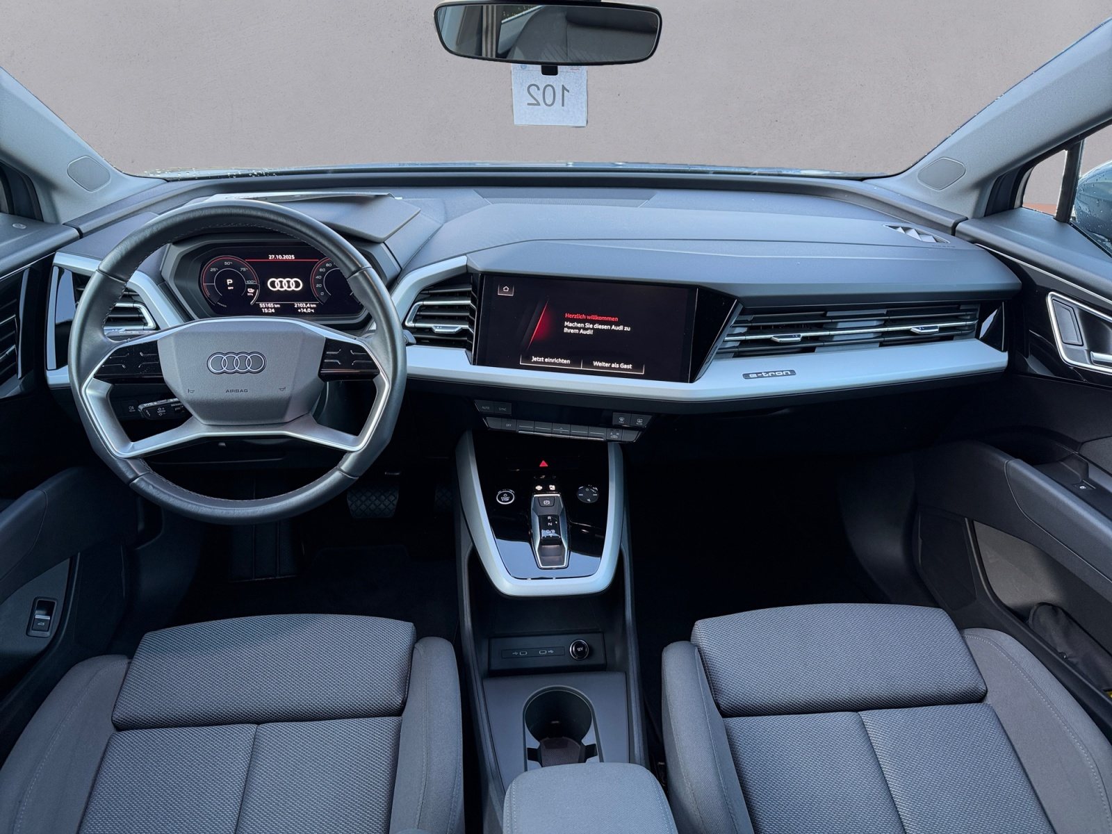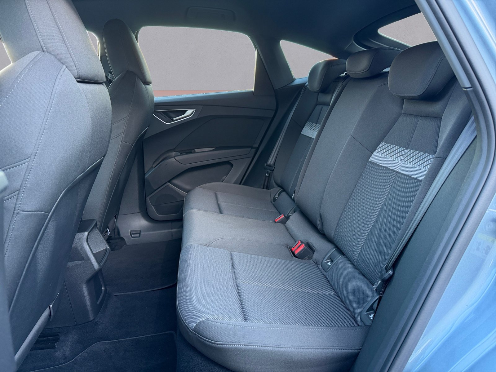 Privacy-Verglasung (Scheiben abgedunkelt), Anhängevorrichtung, Interieur mit Sportsitzen in Stoff schwarz, Akzentflächen schwarz glänzend, Dachhimmel in Stoff, Einstiegsleisten mit Aluminiumeinlegern vorn, MMI Navigation plus mit MMI touch, LED-Scheinwerfer, LED-Heckleuchten, kamerabasierende Verkehrszeichenerkennung, Audi virtual cockpit, Rückfahrkamera, Spurverlassenswarnung, Einparkhilfe plus, adaptiver Geschwindigkeitsassistent mit Geschwindigkeitsbegrenzer, Hochvolt-Batterie 82 kWh (brutto), Elektro-Motor Systemleistung 150 kW, digitaler Radioempfang, Elektromechanische Servolenkung, Audi drive select, Doppelspeichen-Lederlenkrad mit Multifunktion, Kindersitzbefestigung i-Size auf der Beifahrerseite und i-Size und Top Tether auf den äußeren Fondsitzen, Vordersitze manuell einstellbar, Rücksitzlehne umklappbar, Gepäckraumklappe elektrisch öffnend und schließend ohne sensorgesteuerte Gepäckraumentriegelung, Ausweichassistent und Abbiegeassistent, Kindersicherung elektrisch betätigt, Funkschlüssel ohne Safelock, Scheiben seitlich und hinten in Wärmeschutzverglasung, Innenspiegel abblendbar, Airbag für Fahrer und Beifahrer mit Beifahrer-Airbag-Deaktivierung, Seitenairbags vorn mit Kopfairbagsystem und Interaktionsairbag vorn, Komfortmittelarmlehne vorn, Audi pre sense front, Bluetooth-Schnittstelle,