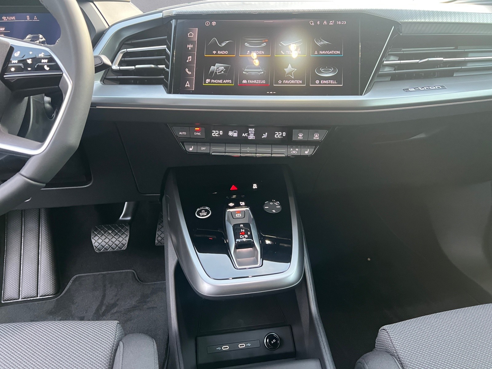 Vorbereitung für Anhängevorrichtung, Entfall Modellbezeichnung und Leistungs- und Technologieschriftzug, Doppelspeichen-Lederlenkrad mit Multifunktion und Schaltwippen, Dachreling in Schwarz, Komfortöffnung Gepäckraumklappe, Komfortschlüssel ohne Safelock, Optikpaket schwarz plus, Räder Audi Sport. 10-Speichen-Stern Aero. schwarz. glanzgedreht. 8.0J|9.0Jx20. Reifen 235/50|255/45 R20, Dekoreinlage Aluminium Konvergenz anthrazit, Parkassistent plus mit Einparkhilfe mit Umgebungsanzeige, Lenkradheizung, Betriebserlaubnis Nachtrag, Volllackierung, Mobilfunk-Signalverstärker Typ 1, Interieur mit Sportsitzen in Stoff schwarz, Matrix LED-Scheinwerfer, S line, Komfortpaket, Klimatisierungspaket, Assistenzpaket Fahren und Parken plus, Smartphone-Paket, Sonnenschutzverglasung abgedunkelt, Ambiente-Lichtpaket, Audi Neuwagen-Reifengarantie, Steuerungsnummer 8, Stabilisator vorn, Stabilisator hinten, Fertigungsablauf Standard, o.b.Abgas, Antriebssystem BEV, Mit spez.Schilder/Aufkleber/ Sicherheitszertifikate für Deutschland, Fußmatten vorn und hinten, Bordliteratur in Deutsch, Gewichtsbereich 8 nur Einbausteuerung keine Bedarfsprognose, spezielles Typschild EU, Trommelbremsen hinten, Scheibenbremsen vorn. 18 Zoll, Elektromechanische Servolenkung, Abdeckungen für Leichtmetallräder, Radschrauben Standard, Bordwerkzeug,Verbandmaterial mit Warndreieck und Warnwesten, Heckantrieb, Fahrzeugklassen-Differenzierung -89A-,Kennzeichenträger vorn und hinten (ECE), Kindersitzbefestigung i-Size-konform auf Beifahrerseite und äußeren Fondsitzen. Top Tether für äußere Fondsitze,Dach ohne Glaseinsatz,Vordersitze manuell einstellbar, Dreip.Automatikgurte vorn mit Gurtund Endbeschlagstraffer und Höheneinstellung, Ausweichassistent und Abbiegeassistent, Wärmeschutzverglasung Frontscheibe, Kindersicherung elektrisch, Scheiben seitlich und hinten in Wärmeschutzverglasung, Airbags vorn. Beifahrerairbag deaktivierbar,UWB fähiges Land und Trägerfrequenz 433.92 bis 434.42Mhz, Außenspiegel Fahrerseite asphärisch. Beifahrerseite konvex, Folienbeklebung, Getriebe Übersetzung 7.915, Kopfstützen vorn,Seitenairbags vorn mit Kopfairbagsystem und Interaktionsairbag vorn, Komfortmittelarmlehne vorn, Außenspiegelgehäuse in Wagenfarbe, Spurverlassenswarnung mit Notfallassistent,Ladekabel Mode 3 für öffentliches Laden bis zu 22 kW (AC), Spurwechselwarnung mit Ausstiegswarnung und Querverkehrassistent hinten, Reifendruck-Kontrollanzeige, Plattformgruppenklasse 2, MMI Navigation plus mit MMI touch, Audi pre sense basic und pre sense rear, Reifen 235/50 R20 100T / EU vorn Reifen 255/45 R20 101T / EU hinten, DC/DC Wandler 2.4 KW, Notbremsassistent vorn, Heckscheiben-Wisch-Waschanlage mit Intervallschaltung, Doppelton-Signalhorn, MMI experience plus, Assistenzpaket Schutz- und Warnsysteme plus, Tagfahrlichtschaltung,Gurtkontrolle. E-Kontakt vorn und hinten. optisch und akustisch, Audi virtual cockpit, Audi sound system, Betriebsspannung 12 V, Audi AG, Ausstattung 1,Serienqualität, Rechtsverkehr, Typprüfland Deutschland, Bauteilesatz ohne länderspezifische Bauvorschrift, Elektro-Motor: Höchste konsolidierte Nutzleistung/Nutzleistung 210 KW GMO: N22/N25/T39/T65/T23/T3P/TI3/T03/T2V/T5J, Keine Aktionsausführung, Audi connect Remote & Control für MMI plus und pro, Aufmerksamkeits- und Müdigkeitserkennung, Regionscode ' ECE ' für Radio, Ladedose Combo 2 (EU),without Service Package, Kein Sonderfahrzeug.Standard-Ausführung, Abwicklung Serie, FOD Funktionen online verfügbar, Räder der Audi Sport / Quattro GmbH,Ländergruppe A, Dämpfung vorn, Getriebe für Elektroantrieb ( 1-Gang ), Drehmoment 545 Nm Grundmotor ist: N22/T3P, Akustisches Fahrzeug-Warnsystem, Fahrzeuge mit besonderen Produktaufwertungsmaßnahmen, Leergewichtsbereich Standard, Audi connect Navigation & Infotainment, Batterie 280A (46Ah), Hochvolt-Batterie 82 kWh (brutto), Kurzheck, Batterieladegerät (Ausf.9), Kältemittel R1234yf,Linkslenker, Federbereich 15 nur Einbausteuerung keine Bedarfsprognose, DC Batterieladung (Ausf. 3), Verkehrszeichenbasierter Geschwindigkeitsbegrenzer, Zellmodul C, Elektro-Motor Aggr.0ET.A, Steuerung SWIN, Audi connect Notruf & Service,Kamerabasierte Verkehrszeichenerkennung, Digitaler Radioempfang,Softwareverbund Ausführung 15 UN-ECE,Serviceanzeige 2 Jahre (fest) ohne km Elektro-Fahrzeug,