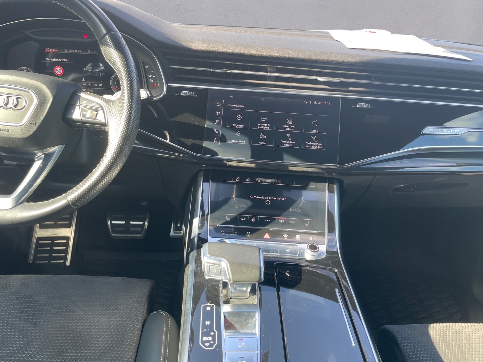 Audi smartphone interface, Privacy-Verglasung (Scheiben abgedunkelt), Ambiente-Lichtpaket plus, Akustikverglasung für Tür- und Seitenscheiben, Anhängevorrichtung, Lederlenkrad im 3-Speichen-Design mit Multifunktion plus und Lenkradheizung, Dachreling schwarz, Sitzheizung vorn und hinten, Optikpaket schwarz, variable Kopfstützen für die Vordersitze, Komfortmittelarmlehne vorn, Außenspiegelgehäuse in Schwarz, Außenspiegel elektrisch einstell- beheiz- und anklappbar mit Memory-Funktion, Parkassistent, Scheinwerfer-Reinigungsanlage, 4-Zonen Komfortklimaautomatik, Audi virtual cockpit plus, Audi phone box, Spurwechselwarnung mit Ausstiegswarnung und Querverkehrsassistent hinten, Audi pre sense rear, 3. Sitzreihe, Standheizung/-lüftung, Vordersitze elektrisch einstellbar inklusive Memory-Funktion für beide Vordersitze, 4-Wege-Lendenwirbelstütze, MMI Navigation plus mit MMI touch response, Matrix-LED-Scheinwerfer mit dynamischem Blinklicht, LED-Heckleuchten mit dynamischem Blinklicht, S line Sportpaket, Sportsitze vorn, Pedalerie und Fußstütze in Edelstahl, Dachhimmel in Stoff schwarz, Dekoreinlagen Holz Eiche grau, Vorbereitung für Functions on Demand, quattro (mit selbstsperrendem Mittendifferenzial), Bedientasten schwarz glänzend mit haptischem Feedback und Aluminiumoptik Interieur, tiptronic (für Allrad), kamerabasierende Verkehrszeichenerkennung, digitaler Radioempfang, elektromechanische Servolenkung, Anfahrassistent, Fußgängerschutzmaßnahmen erweitert, Einstiegleisten mit Aluminiumeinlage vorn/hinten beleuchtet vorn mit S-Schriftzug, Automatisches Sperrdifferenzial, Audi drive select (mit efficiency), adaptive air suspension sport, Kindersitzbefestigung ISOFIX und Top Tether, Abgaskonzept EU6 DG, Gepäckraumklappe elektrisch öffnend und schließend, Innenspiegel automatisch abblendend rahmenlos, Airbag für Fahrer und Beifahrer mit Beifahrer-Airbag-Deaktivierung, Seitenairbags vorn und Kopfairbagsystem, Sonnenblenden mit Make-up-Spiegel beleuchtet auf Fahrer- und Beifahrerseite, Spurverlassenswarnung, Geschwindigkeitsregelanlage inklusive Geschwindigkeitsbegrenzer,