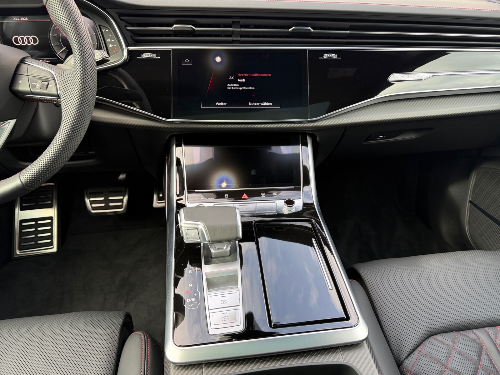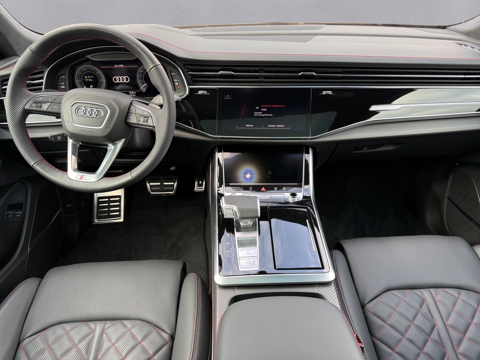 ABR POWER S ca. 410 kW - 557 PS - 750 NM, ABT PERFORMANCE HR 23 GLOSSY KOMPLETTRADSATZ, ABT Q8 AERO PAKET, Audi pre sense front, Audi pre sense rear, Diebstahlwarnanlage, Rücksitzbank plus, Multifunktionskamera, Anhängevorrichtung inkl. Anhängerassistent, Lenkradeinstellung elektrisch, Akustikverglasung Tür- und Seitenscheiben, Kreuzungsassistent, Kamerabasierte Verkehrszeichenerkennung, Sonnenschutzrollo elektrisch für die hinteren Seitenscheiben manuell für die Heckscheibe, Räder 5-Segmentspeichen graphitgrau 10 0Jx21 Reifen 285/45 R21, Komfort-Standklimatisierung, Reifendruck-Kontrollsystem, Allradlenkung, Kindersitzbefestigung ISOFIX-konform für den Beifahrersitz, Vordersitze elektrisch einstellbar inklusive Memory-Funktion für beide Vordersitze, Dachhimmel in Mikrofaser Dinamica schwarz, Anschlussgarantie 3 Jahre max. 100.000 km, Farbnähte rot Audi Sport GmbH, Optikpaket schwarz plus, Garagentoröffner, Adaptiver Fahrassistent mit Notfallassistent, Ambiente-Lichtpaket plus, Elektrische Zuziehhilfe für Türen, Schienensystem mit Fixierset, Digitale OLED-Heckleuchten, Sitzheizung vorn und hinten, Sonnenblenden vorn verschiebbar, USB-Anschlüsse mit Ladefunktion im Fond, Wendematte, HD Matrix LED-Scheinwerfer mit dynamischer Lichtinszenierung und dynamischem Blinklicht, Komfortschlüssel in Verbindung mit Diebstahlwarnanlage, Ladekantenschutz aus Edelstahl, Bang & Olufsen Premium Soundsystem mit 3D-Klang, Außenspiegelgehäuse in Carbon, Leder Valcona mit S-Prägung und Rautensteppung, Panorama-Schiebedach, Vordersitze elektrisch einstellbar mit Memory-Funktion, Audi connect Schlüssel, Außenspiegel elektrisch einstell- beheiz- und anklappbar automatisch abblendend mit Memory-Funktion, Parkassistent mit Einparkhilfe plus, Head-up Display, Dachreling schwarz, Assistenzpaket Plus mit Remote Parkassistent plus, Interieurelement oben Leder und Interieurelemente unten Kunstleder, Scheinwerfer-Reinigungsanlage, Dekoreinlagen Carbon Köper matt, Remote-Parkassistent plus, Audi phone box, Lederlenkrad 3-Speichen mit Multifunktion Schaltwippen und Lenkradheizung, LTE-Unterstützung für Audi phone box, HD Matrix LED-Scheinwerfer mit Audi Laserlicht LED-Heckleuchten und Scheinwerfer-Reinigungsanlage, Spurwechselwarnung mit Ausstiegswarnung und Querverkehrsassistent hinten, Sonnenschutzverglasung abgedunkelt, Sportsitze plus vorn, Sitzbelüftung und Massagefunktion vorn, Audi Pre sense Fond-Paket, Komfortschlüssel mit sensorgesteuerter Gepäckraumentriegelung mit Safelock, HD Matrix LED-Scheinwerfer mit Audi Laserlicht, Drahtlos beheizbare Klimakomfort- und Akustikverglasung Frontscheibe, Umgebungskameras, Adaptiver Geschwindigkeitsassistent mit Geschwindigkeitsbegrenzer Effizienz- Ausweich- und Abbiegeassistent, Elektrische Laderaumabdeckung, Vorbereitung für Functions on Demand, Abgaskonzept WLTP3 M1 N1-I//EU6EA, Linkslenker, tiptronic, Audi connect Navigation & Infotainment, Trennnetz, Kindersitzbefestigung ISOFIX-konform Top Tether für Rücksitzbank, S line, 3-Zonen-Komfortklimaautomatik, Doppelton-Signalhorn, Außenspiegel links asphärisch, Audi drive select, 6 Zyl.Ottomotor 3 0L Aggr. 06M.C, Kraftstoffsystem Otto-Direkteinspritzung(FSI), Typprüfland Deutschland, Ohne Luftqualität-Paket, Einstiegs LED mit Projektion vorne und hinten, Pedalerie und Fußstütze aus Edelstahl, Innenspiegel automatisch abblendend rahmenlos, Dachkantenspoiler inklusive dritter Bremsleuchte, Halteassistent, Außenspiegel rechts asphärisch, Geschwindigkeitsregelanlage inklusive Geschwindigkeitsbegrenzer, Audi connect Notruf & Service inklusive Audi connect Remote & Control, Reifenreparaturset, adaptive air suspension sport, Ladekabel Mode3 Typ 2 3 32A, Elektromechanische Servolenkung, Einstiegsleisten mit Aluminiumeinlegern vorne und hinten beleuchtet vorne mit S-Schriftzug, Ladedose AC Typ 2, Audi Application Store und Smartphone-Interface, 6-Zylinder-Ottomotor 3 0L/250 KW Hybrid TFSI Systemleistung 360 KW Grundmotor ist: T9I, Sitzbelegungserkennung, Nichtraucherausführung, Automatisches Sperrdifferenzial, Gepäckraumklappe elektrisch öffnend und schließend, 4-Wege-Lendenwirbelstütze für die Vordersitze, Komfortmittelarmlehne vorn, Fußmatten vorn und hinten, Serviceanzeige 30.000 km oder 2 Jahre (variabel), Airbags vorn Beifahrerairbag deaktivierbar, Kraftstoffbehälter, Rekuperation, Bedientasten schwarz glänzend mit haptischem Feedback und Aluminiumoptik Interieur, Karosserieform Variante 1, Kopfstützen vorn, Hybrid-Antriebssystem PHEV, Stoßfänger S line in Volllackierung, Scheibenbremsen vorn 19 Zoll Bremssättel rot lackiert, Digitaler Radioempfang, Tagfahrlicht, Datenmodul Europa, E-Motor (Hybrid) Systemleistung 360KW Aggr.0EE.B, Audi virtual cockpit, Standard-Ausstattung, quattro (mit selbstsperrendem Mittendifferenzial),