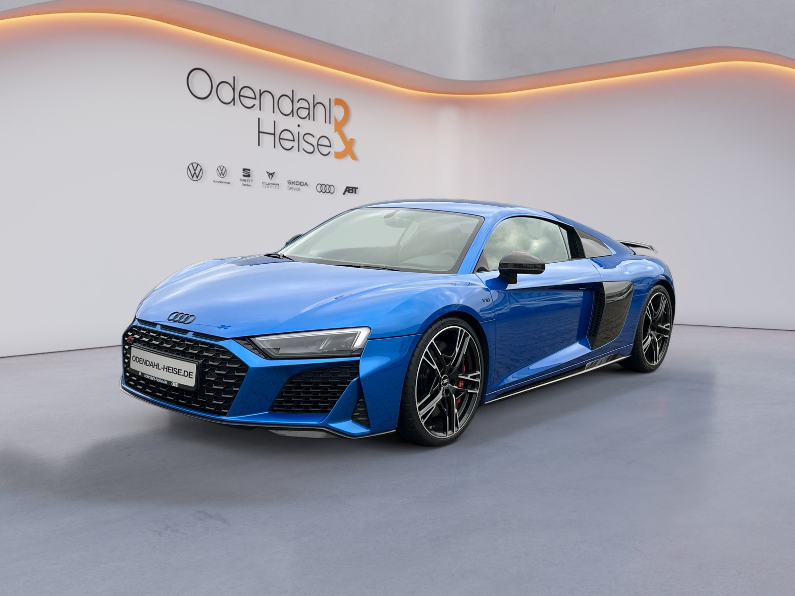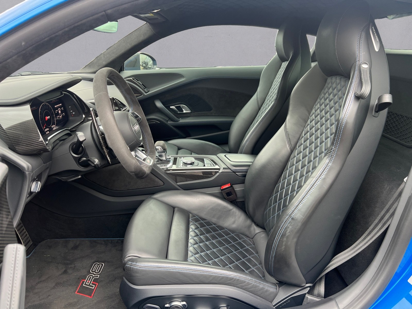 Herstelleranschlussgarantie bis 05/2026 (Ende bei Erreichung von 50.000 Kilometer), Vorbereitung für Ortungsassistenten, R8 performance-Designpaket, Bang & Olufsen Sound System mit Kopfstützenlautsprechern, Volllederausstattung, R8-Sportsitze in Alcantara-Leder-Kombination, Einparkhilfe plus mit Rückfahrkamera, Audi phone box, Audi smartphone interface, LTE-Unterstützung für Audi phone box, Kontrastnähte für Volllederausstattung mit und ohne Rautensteppung, Sitzbezüge in Leder Feinnappa mit Rautensteppung für R8-Sportsitze, erweitertes Optikpaket mit Audi Ringen und Schriftzügen in Schwarz glänzend Audi exclusive, Dachhimmel in Alcantara schwarz mit Rautensteppung, Sitzeinstellung elektrisch und pneumatisch mit , R8-Performance-Lederlenkrad mit Multifunktion plus und 4 Bediensatelliten, Audi magnetic ride mit CFK-Stabilisator, Bedienelemente in Alcantara mit mercatoblauer Kontrastnaht Audi exclusive, Kindersitzbefestigung ISOFIX für den Beifahrersitz, LED-Scheinwerfer abgedunkelt mit dynamischem Blinklicht und Audi Laserlicht inklusive Fernlichtassistent, Keramikbremsanlage mit Bremssätteln in Rot glänzend (19 Zoll), Dynamiklenkung, Fernlichtassistent, Kraftstoffbehälter groß, Leichtmetallräder 5-Doppelspeichen- Dynamik anthrazitschwarz glanzgedreht 8 5J|11 0Jx20 Reifen 245/30|305/30 R20, Reifen 245/30 R20 90Y xl vorn Reifen 305/30 R20 103Y xl hinten, MMI Navigation plus mit MMI touch, MMI Radio plus, Sitzheizung, Audi virtual cockpit, Einparkhilfe plus, Außenspiegel elektrisch einstell- beheiz- und anklappbar beidseitig automatisch abblendend, Diebstahlwarnanlage, erweiterte Dekoreinlagen Carbon Köper glänzend, Lichtpaket, Einstiegsleisten in Carbon glänzend mit beleuchtetem Aluminiumeinleger Audi exclusive, Kraftstoffsystem Otto-Direkteinspritzung(FSI), Komfortschlüssel (mit Safelock), Airbags mit Beifahrer-Airbag-Deaktivierung, Seitenairbags vorn mit Kopfairbagsystem, Heckflügel bzw. -spoiler feststehend in Carbon, Optikpaket Carbon glänzend Audi exclusive, Außenspiegelgehäuse in Carbon glänzend Audi exclusive, Sideblades in Carbon glänzend, Start-Stop-System, Tagfahrlicht, LED-Heckleuchten mit dynamischem Blinklicht, 10-Zylinder-Ottomotor 5 2 L/456 KW(40V) V10 FSI und MPI Grundmotor ist: TT8, Gurtanlegekontrolle, quattro, S tronic, Coupe, Abgaskonzept EU6 AP,