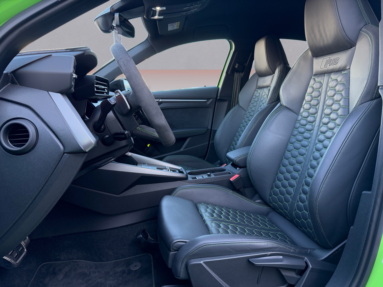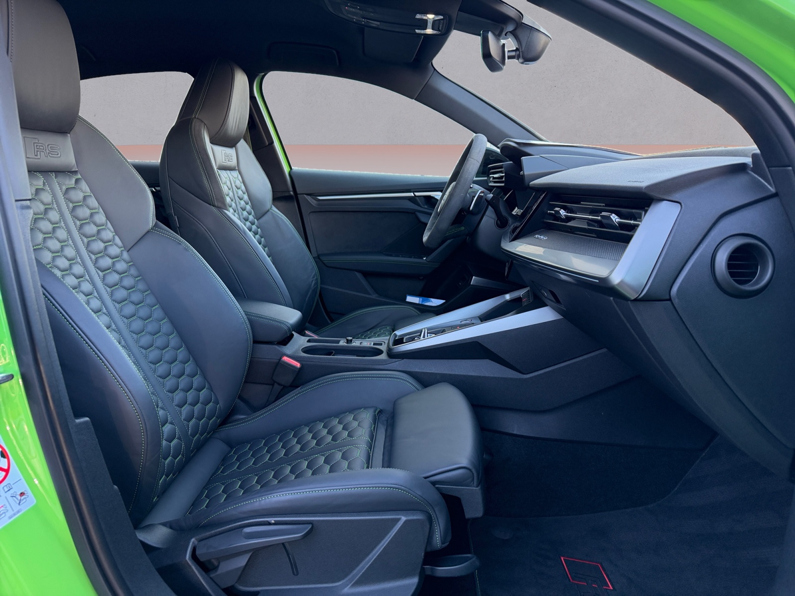 MMI Navigation plus mit MMI touch, Rückfahrkamera, Bang & Olufsen Premium Soundsystem mit 3D-Klang, RS-Sportabgasanlage, Komfortschlüssel mit sensorgesteuerter Gepäckraumentriegelung, Reifendruck-Kontrollsystem, Matrix-LED-LED Scheinwerfer-Heckleuchten und Scheinwerfer-Reinigungsanlage, RS-Exterieurumfänge in Schwarz glänzend, kamerabasierende Verkehrszeichenerkennung, Leder Feinnappa mit Wabensteppung und RS-Prägung , Optikpaket schwarz plus, Anhebung der Höchstgeschwindigkeit auf 280 km/h, Komfortöffnung Gepäckraumklappe, Innenspiegel automatisch abblendend rahmenlos, adaptiver Geschwindigkeitsassistent, Außenspiegel elektrisch einstell- beheiz- und anklappbar beidseitig automatisch abblendend, Sonnenschutzverglasung abgedunkelt, RS-Designpaket grün, Dach in Kontrastfarbe, Audi pre sense basic, Matrix LED-Scheinwerfer mit dynamischer Lichtinszenierung und dynamischem Blinklicht, Halteassistent, LED-Heckleuchten mit dynamischer Lichtinszenierung und dynamischem Blinklicht, Ledervariante 12, Vorbereitung für Functions on Demand, i-Size und Top Tether für die äußeren Fondsitze, Audi virtual cockpit plus mit zusätzlichem RS-Layout, Sportlimousine, Scheinwerfer-Reinigungsanlage, Progressivlenkung, Audi pre sense front, Dekoreinlage Carbon Atlas Struktur, Einstiegleisten in den Türausschnitten (beleuchtet), Doppelton-Signalhorn, Kindersicherung elektrisch betätigt, MMI Radio plus, quattro, 2-Zonen-Komfortklimaautomatik, Gurtanlegekontrolle mit Sitzbelegungserkennung hinten, ECO-Funktion, Parkassistent mit Einparkhilfe plus, Abgaskonzept EU6 AP, Spurverlassenswarnung, Airbags vorn Beifahrerairbag deaktivierbar, Pedalerie aus Edelstahl, Ambiente-Lichtpaket plus, Licht-/Regensensor, Sportsitze vorn, Kopfstützen vorn, Kopfstützen hinten (3 Stück), Start-Stop-System, Frontscheibe in Akustikverglasung, Sportkontur-Lederlenkrad 3-Speichen unten abgeflacht mit Multifunktion plus und Schaltwippen, Bluetooth-Schnittstelle, Außenspiegelgehäuse in Schwarz, Seitenairbags vorn mit Kopfairbagsystem und Interaktionsairbag vorn, digitaler Radioempfang, Ausweichassistent und Abbiegeassistent, Audi drive select, Aluminiumoptik im Interieur, Tagfahrlicht, Einstiegs-LED mit RS-Projektion vorn, Vorbereitung für Smartphone-Interface, 12-Volt-Steckdose im Fond, Dachhimmel in Stoff schwarz, Ablage- und Gepäckraumpaket, Vordersitze manuell einstellbar,