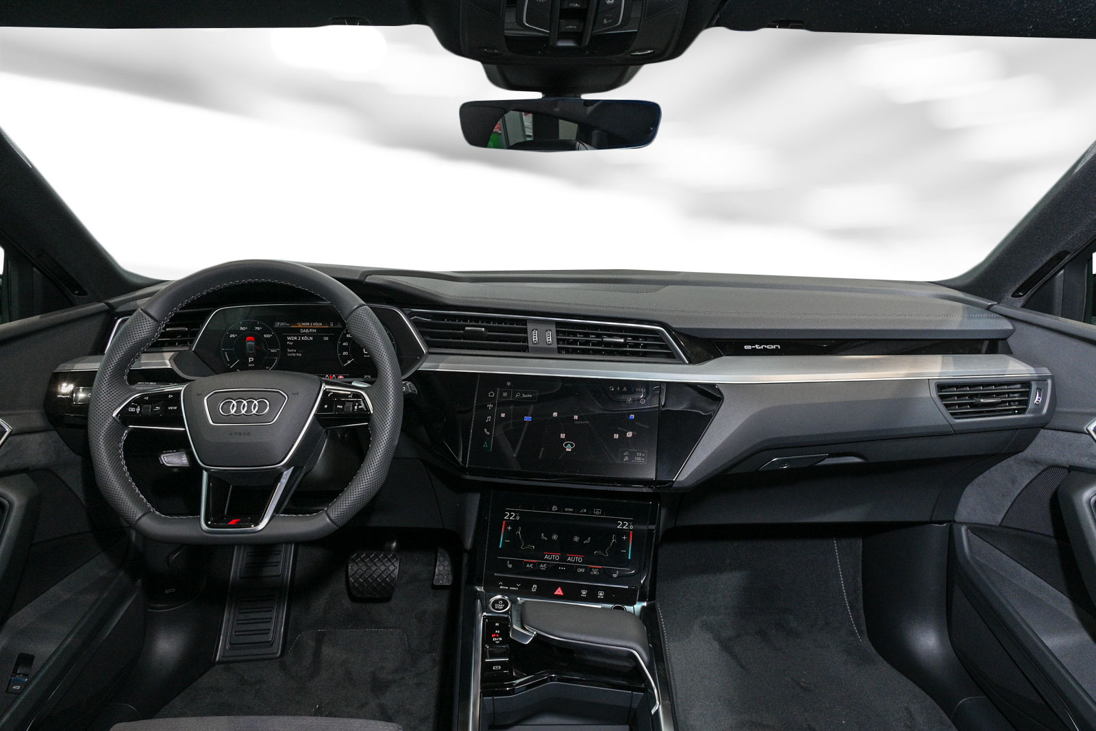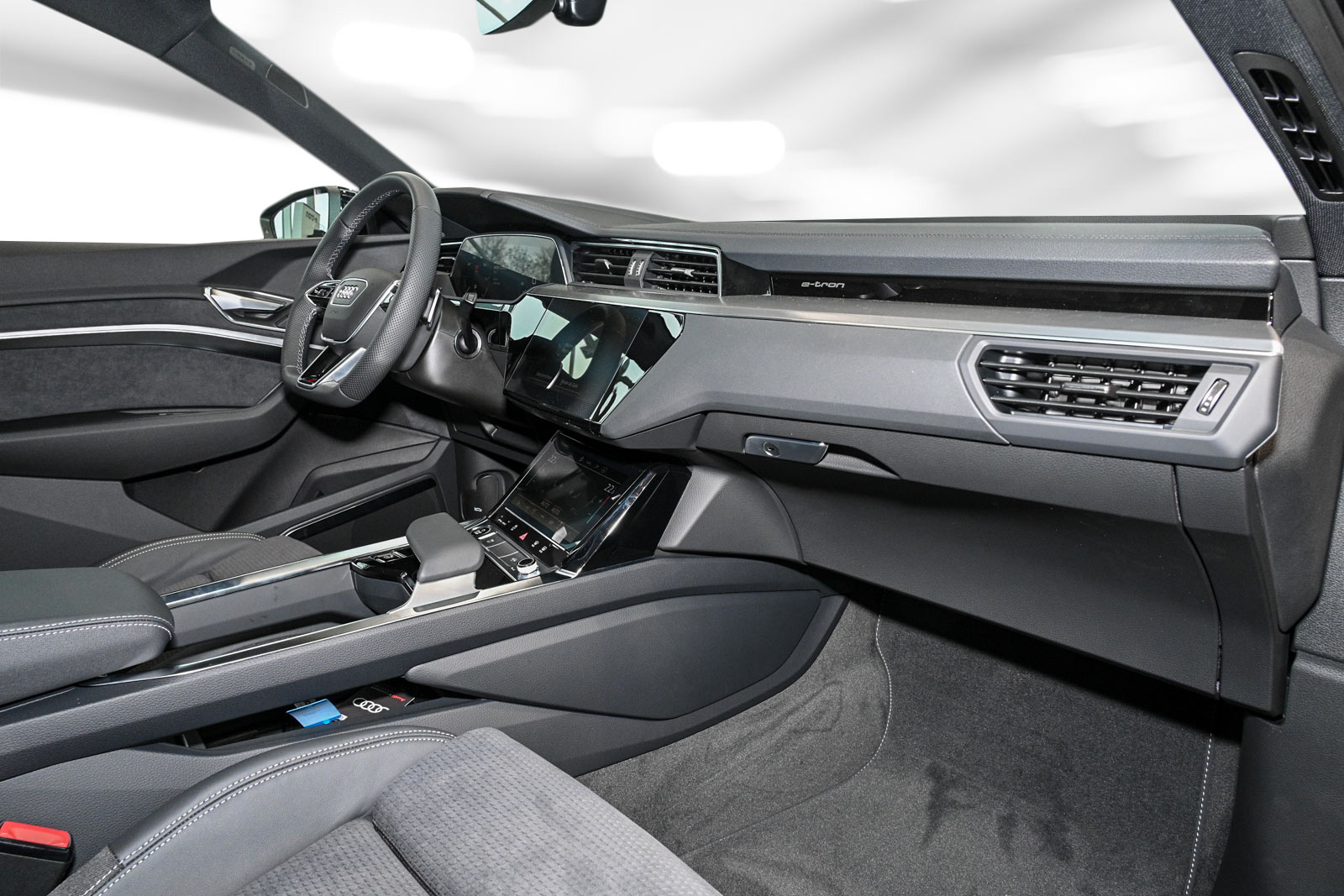 Sportsitze vorn, Vorbereitung für Anhängevorrichtung, Betriebserlaubnis Nachtrag, Räder Audi Sport 5-V-Speichen-Stern platingrau glanzgedreht 9 5Jx21 Reifen 265/45 R21, LTE-Unterstützung für Audi phone box, Bedientasten schwarz glänzend mit haptischem Feedback und Aluminiumoptik Interieur, Smartphone-Interface, Zweiter Ladezugang, Wandhalterung Clip, Mikrofaser Dinamica Frequenz/ Leder-Kombination mit S-Prägung, Spurverlassenswarnung mit Notfallassistent und kamerabasierter Verkehrszeichenerkennung, Assistenzpaket Stadt, Umgebungskameras, Komfortschlüssel inkl. sensorgesteuerterGepäckraumentriegelung, Ablage- und Gepäckraumpaket, Sonnenschutzverglasung abgedunkelt, Ambiente-Lichtpaket, Akustikverglasung für Tür- und Seitenscheiben, advanced selection, Interieur S line, Audi Neuwagen-Reifengarantie, Audi connect Schlüssel, adaptive air suspension sport, Sportkontur-Lederlenkrad 3-Speichen unten abgeflacht mit Multifunktion und Schaltwippen, Entfall Modellbezeichnung und Leistungs-/Technologie-Schriftzug, Panorama-Glasdach, Dachreling in Aluminium, Seitenairbags vorn und hinten und Kopfairbagsystem, Dekoreinlagen Aluminium matt gebürstet dunkel, variable Kopfstützen für die Vordersitze, Komfortmittelarmlehne vorn, Außenspiegel elektrisch einstell- beheiz- und anklappbar beidseitig automatisch abblendend, Erhöhte Heizleistung, 4-Zonen-Komfortklimaautomatik, Audi virtual cockpit plus, Bang & Olufsen Premium Soundsystem mit 3D Klang, Audi phone box, Fahrzeugladekabel, Regionscode ' ECE ' für Radio, Ladedose CCS Typ 2, without Service Package, Vorbereitung für Functions on Demand, Standklimatisierung, Akustisches Fahrzeug-Warnsystem, Fahrzeuge ohne besonderen Produktaufwer-tungsmaßnahmen, Reifen 255/50 R20 109H xl, Audi connect Navigation & Infotainment, Audi connect Notruf & Service mit Audi connect Remote & Control, Datenmodul Europa, Batterie ohne Kapazitätsangabe, Hochvolt-Batterie 71 kWh (brutto), On-board-Ladegerät bis 11 kW (AC), Kältemittel R1234yf, Elektro-Motor Systemleistung 230KW Grundmotor ist: T4K/T1A, e-tron Ladesystem kompakt, Digitaler Radioempfang, Progressivlenkung, Audi music interface, Serviceanzeige 30000 km oder 2 Jahre ( fest ) Elektro-Fahrzeug, Antriebssystem BEV, Mit spez.Schilder/Aufkleber/ Sicherheitszertifikate für Deutschland, Fußmatten vorn und hinten, Bordliteratur in Deutsch, Sitzbelegungserkennung, Scheibenbremsen hinten 18 Zoll, Scheibenbremsen vorn 18 Zoll, Radschrauben mit Diebstahlsicherung und Radlöseerkennung, Bordwerkzeug, Fahrzeugklassen-Differenzierung-4KE/4KH-, Verbandmaterial mit Warndreieck und Warnwesten, quattro, Sicherheitslenksäule, Stoßfänger advanced in Kontrastlackierung, Kindersitzbefestigung ISOFIX und Top Tether für die Rücksitzbank, Trennnetz, Kindersitzbefestigung ISOFIX für den Beifahrersitz, Vordersitze manuell einstellbar, Manuelle , Gepäckraumklappe elektrisch öffnend und schließend, Frontscheibe in Wärmeschutz- und Akustikverglasung, Innenspiegel automatisch abblendend rahmenlos, Airbags vorn Beifahrerairbag deaktivierbar, Glanzpaket, Trägerfrequenz 433 92 bis 434 42 MHz, Heckspoiler, Folienbeklebung, Außenspiegel rechts (großes Sichtfeld) konvex, Außenspiegel links asphärisch, Sonnenblenden vorn, Außenspiegelgehäuse in Wagenfarbe lackiert, Audi pre sense front, Kofferraumbodenmatte, 12 Volt Steckdose, Schalttafeloberseite in Kunstleder, Reifendruck-Kontrollanzeige, Haushaltsstecker Typ E/F für das e-tron Ladesystem, Industriestecker CEE 16A 400V lang undgerade für das e-tron Ladesystem, Ladekabel Mode 3 für öffentliches Laden 22 kW (AC), LED- Hauptscheinwerfer mit Linse, Tagfahrlicht, Geschwindigkeitsregelanlage mit Geschwindigkeitsbegrenzer, Doppelton-Signalhorn, Nichtraucherausführung, Scheibenwischerarme und -blätter Standard, Laufendes Kundenersatzfahrzeug,
