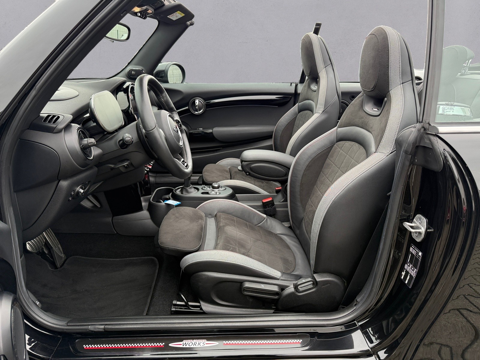 Fernlichtassistent, Rückfahrkamera, HiFi-Lautsprechersystem Harman-Kardon, Spurverlassenswarnung, Auffahrwarnsystem mit Bremsfunktion, Verkehrszeichenerkennung, Driving Assistant, Audio-Navigationssystem, Head-up-Display, Kombiinstrument digital, Telefonie mit Wireless Charging, Freisprecheinrichtung Bluetooth mit USB-/Audio-Schnittstelle, Klimaautomatik 2-Zonen mit autom. Umluft-Control , Sportsitze vorn John Cooper Works, Sport-Auspuffanlage, DAB-Radio, LED Scheinwerfer mit adaptiver Lichtverteilung, Heckleuchten LED, Ambiente-Beleuchtung, Außenspiegel elektr. verstellbar & anklappbar, Bremsassistent, Einstiegsleisten mit Modell-Schriftzug, Getriebe Sport-Automatic - (8-Stufen), Heckscheibe heizbar, Isofix-Aufnahmen für Kindersitz, Kopf-Airbag-System vorn, Lenkrad (Sport Leder Nappa) mit Multifunktion, Licht- und Regensensor, MINI Driving Modes, Motor 2 0 Ltr. - 170 kW 16V, Pedalerie Edelstahl, Tagfahrlicht, Elektrisch verstellbares Verdeck schwarz, Zentralinstrument mit LED-Ring, Zentralverriegelung mit Fernbedienung,