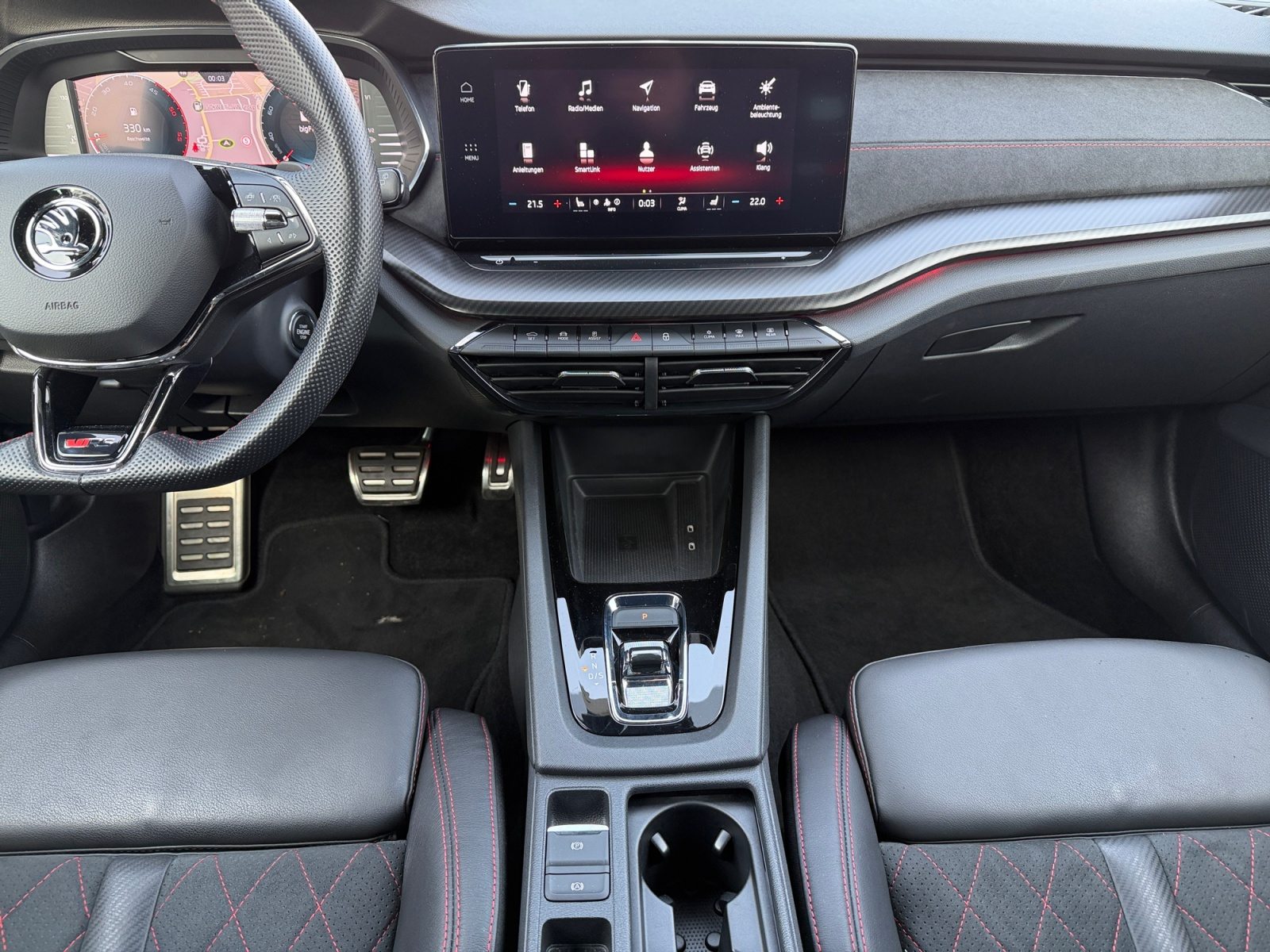 Navigationssystem, 'REAR VIEW', 'PARK ASSIST' - Parklenkassistent mit Einparkhilfe (Parksensoren vorn und hinten), Adaptiver Abstandsassistent ACC (Regelbereich bis 210 km/h) und Speedlimiter (Geschwindigkeitsbegrenzer), 'SUNSET' + akustische vordere Seitenscheiben, Beheizbare Vorder- und äußere Rücksitze, Komfortsitze vorn, Verkehrszeichenerkennung, Elektrisch einstell- anklapp- und beheizbare Außenspiegel (Memoryfunktion)& automatische Abblendung (Fahrerseite), Sitzbezüge in Microfaser und Leder kombiniert mit hochwertigen Materialien, Lendenwirbelstützen vorn elektrisch einstellbar mit Massagefunktion, Nebelscheinwerfer mit Abbiegelicht, Elektrisch betätigte Kindersicherung fürdie hinteren Türen und Fenster, Notfall- und Stauassistent sowie Adaptiver Spurhalteassistent und kapazitives Lenkrad, Komfortöffnung mit elektrischer Heckklappenbedienung (für Ausstattungspaket Komfort Plus), 3-Speichen-Sportmultifunktionsleder- lenkrad mit dem Heizung und Schaltwippenfür das DSG, Spurwechsel- und Ausparkassistent sowie Ausstiegswarner (Side Assist), Elektrisch einstellbare Vordersitze mit manuell herausziehbarer Beinauflagenverlängerung, 2 USB-Anschlüsse vorn USB-Ladeanschlussam Rückspiegelfuß sowie 2 USB-Ladeanschlüsse hinten, Klimaanlage Climatronic (3-Zonen) mit Allergenfilter & Geruchsfilter, Head-up-Display, Virtuelles Pedal, Sportfahrwerk für DCC vorn, Sportfahrwerk für DCC hinten, RS PLUS, Adaptives Fahrwerk DCC und Fahrprofilauswahl, Gepäckraumauskleidung aus Filz, Ausstattungslinie RS, Elektronische Quer-Differenzialsperre (XDS+), Reifendrucküberwachung, LED-Tagfahrlicht, Gurtanlegesignalisation, Kraftstoffsystem Diesel, Progressive Lenkung, Infotainmentdisplay 10', Dreipunkt-Automatiksicherheitsgurt für mittleren Rücksitzplatz, Frontradarassistent mit Fußgänger- und Radfahrererkennung und City-Notbremsfunktion, Digital Cockpit Plus, 8 Lautsprecher, Rücksitzlehne (geteilt umlegbar) mit Mittelarmlehne sowie Durchlademöglichkeit, Bremskraftverstärker, Karosserievariante Combi, Bluetooth Freisprecheinrichtung und Phonebox mit induktiver Ladefunktion, Dynamische und automatische Leuchtweitenregulierung, Elektrische Fensterheber vorn und hintenmit Komfortfunktion und Einklemmschutz, Frontantrieb, Emissionsnorm EU6d-ISC-FCM (AP), Sprachsteuerung, 4 Türen, Türeinstiegsleisten (RS) vorne, Dachreling in Schwarz glänzend, 7-Gang-DSG, Berganfahrassistent, Schl}sselloses Schlie - und Startsystem 'Keyless Advanced' ohne Safesicherung, Sicherheitsleuchten in den Seitentüren vorn, Regensensor und Fahrlichtassistent (Easy Light Assist), Elektronische Parkbremse inklusive Auto-Hold-Funktion, 2 0l TDI 147 kW / 200 PS, Fahrer- und Beifahrerairbag sowie Knieairbag auf Fahrerseite und Beifahrerairbag-Deaktivierung, Start-Stopp-Automatik mit Rekuperation (Bremsengerierückgewinnung), Nebelschlussleuchte und Rückfahrscheinwerfer, Notruffunktion eCall+, Schwarzer Kühlergrillrahmen und Zierleisten in Schwarz an den Seitenfenstern, 'SMART LINK' (wired and wireless connect), ISOFIX-Verankerung auf dem Beifahrersitzund den äußeren Rücksitzen inklusive Top-Tether, RS Stoßfänger und Anbauteile, Seitenairbags vorn sowie Center-Airbag und Kopfairbags, Integrierte Kopfstützen vorn, Steuerung Hinterachsgewicht, Digitaler Radioempfang DAB+, Abbiegebremsfunktion und Ausweichunterstützung (Abbiege- und Ausweichassistent), 'DRIVER ALERT' - Müdigkeitserkennung, Ambientebeleuchtung im Innenraum vorn und Logo-Projektor in den Vordertüren, 2 0l TDI (4-Zylinder Dieselmotor), Dekorleiste in Dark-Carbon, Dynamischer Fernlichtassistent (Dynamic Light Assist), LED-Heckleuchten mit Kristallglasoptik und animierten Blinkern,