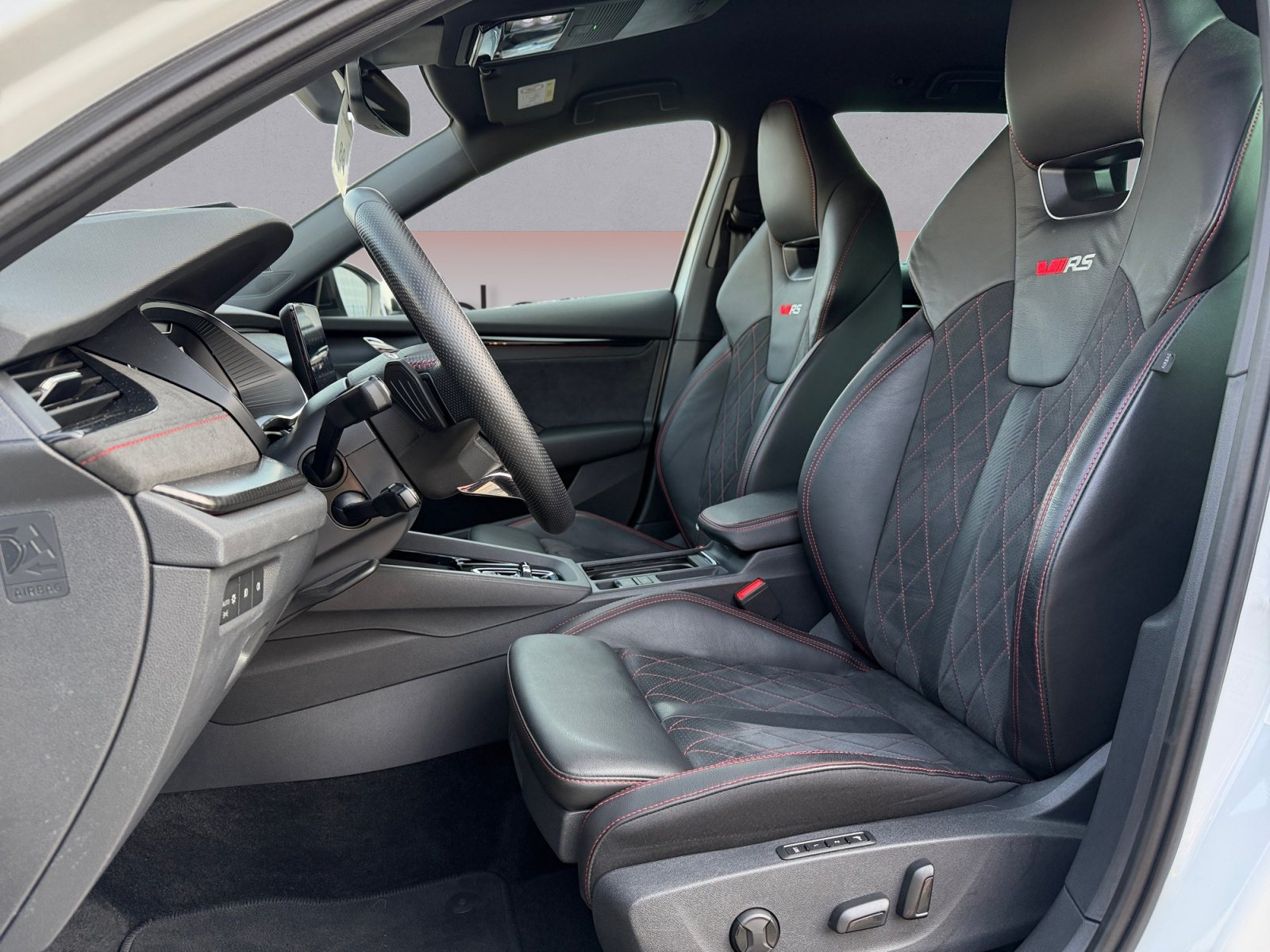 Navigationssystem, 'REAR VIEW', 'PARK ASSIST' - Parklenkassistent mit Einparkhilfe (Parksensoren vorn und hinten), Adaptiver Abstandsassistent ACC (Regelbereich bis 210 km/h) und Speedlimiter (Geschwindigkeitsbegrenzer), 'SUNSET' + akustische vordere Seitenscheiben, Beheizbare Vorder- und äußere Rücksitze, Komfortsitze vorn, Verkehrszeichenerkennung, Elektrisch einstell- anklapp- und beheizbare Außenspiegel (Memoryfunktion)& automatische Abblendung (Fahrerseite), Sitzbezüge in Microfaser und Leder kombiniert mit hochwertigen Materialien, Lendenwirbelstützen vorn elektrisch einstellbar mit Massagefunktion, Nebelscheinwerfer mit Abbiegelicht, Elektrisch betätigte Kindersicherung fürdie hinteren Türen und Fenster, Notfall- und Stauassistent sowie Adaptiver Spurhalteassistent und kapazitives Lenkrad, Komfortöffnung mit elektrischer Heckklappenbedienung (für Ausstattungspaket Komfort Plus), 3-Speichen-Sportmultifunktionsleder- lenkrad mit dem Heizung und Schaltwippenfür das DSG, Spurwechsel- und Ausparkassistent sowie Ausstiegswarner (Side Assist), Elektrisch einstellbare Vordersitze mit manuell herausziehbarer Beinauflagenverlängerung, 2 USB-Anschlüsse vorn USB-Ladeanschlussam Rückspiegelfuß sowie 2 USB-Ladeanschlüsse hinten, Klimaanlage Climatronic (3-Zonen) mit Allergenfilter & Geruchsfilter, Head-up-Display, Virtuelles Pedal, Sportfahrwerk für DCC vorn, Sportfahrwerk für DCC hinten, RS PLUS, Adaptives Fahrwerk DCC und Fahrprofilauswahl, Gepäckraumauskleidung aus Filz, Ausstattungslinie RS, Elektronische Quer-Differenzialsperre (XDS+), Reifendrucküberwachung, LED-Tagfahrlicht, Gurtanlegesignalisation, Kraftstoffsystem Diesel, Progressive Lenkung, Infotainmentdisplay 10', Dreipunkt-Automatiksicherheitsgurt für mittleren Rücksitzplatz, Frontradarassistent mit Fußgänger- und Radfahrererkennung und City-Notbremsfunktion, Digital Cockpit Plus, 8 Lautsprecher, Rücksitzlehne (geteilt umlegbar) mit Mittelarmlehne sowie Durchlademöglichkeit, Bremskraftverstärker, Karosserievariante Combi, Bluetooth Freisprecheinrichtung und Phonebox mit induktiver Ladefunktion, Dynamische und automatische Leuchtweitenregulierung, Elektrische Fensterheber vorn und hintenmit Komfortfunktion und Einklemmschutz, Frontantrieb, Emissionsnorm EU6d-ISC-FCM (AP), Sprachsteuerung, 4 Türen, Türeinstiegsleisten (RS) vorne, Dachreling in Schwarz glänzend, 7-Gang-DSG, Berganfahrassistent, Schl}sselloses Schlie - und Startsystem 'Keyless Advanced' ohne Safesicherung, Sicherheitsleuchten in den Seitentüren vorn, Regensensor und Fahrlichtassistent (Easy Light Assist), Elektronische Parkbremse inklusive Auto-Hold-Funktion, 2 0l TDI 147 kW / 200 PS, Fahrer- und Beifahrerairbag sowie Knieairbag auf Fahrerseite und Beifahrerairbag-Deaktivierung, Start-Stopp-Automatik mit Rekuperation (Bremsengerierückgewinnung), Nebelschlussleuchte und Rückfahrscheinwerfer, Notruffunktion eCall+, Schwarzer Kühlergrillrahmen und Zierleisten in Schwarz an den Seitenfenstern, 'SMART LINK' (wired and wireless connect), ISOFIX-Verankerung auf dem Beifahrersitzund den äußeren Rücksitzen inklusive Top-Tether, RS Stoßfänger und Anbauteile, Seitenairbags vorn sowie Center-Airbag und Kopfairbags, Integrierte Kopfstützen vorn, Steuerung Hinterachsgewicht, Digitaler Radioempfang DAB+, Abbiegebremsfunktion und Ausweichunterstützung (Abbiege- und Ausweichassistent), 'DRIVER ALERT' - Müdigkeitserkennung, Ambientebeleuchtung im Innenraum vorn und Logo-Projektor in den Vordertüren, 2 0l TDI (4-Zylinder Dieselmotor), Dekorleiste in Dark-Carbon, Dynamischer Fernlichtassistent (Dynamic Light Assist), LED-Heckleuchten mit Kristallglasoptik und animierten Blinkern,