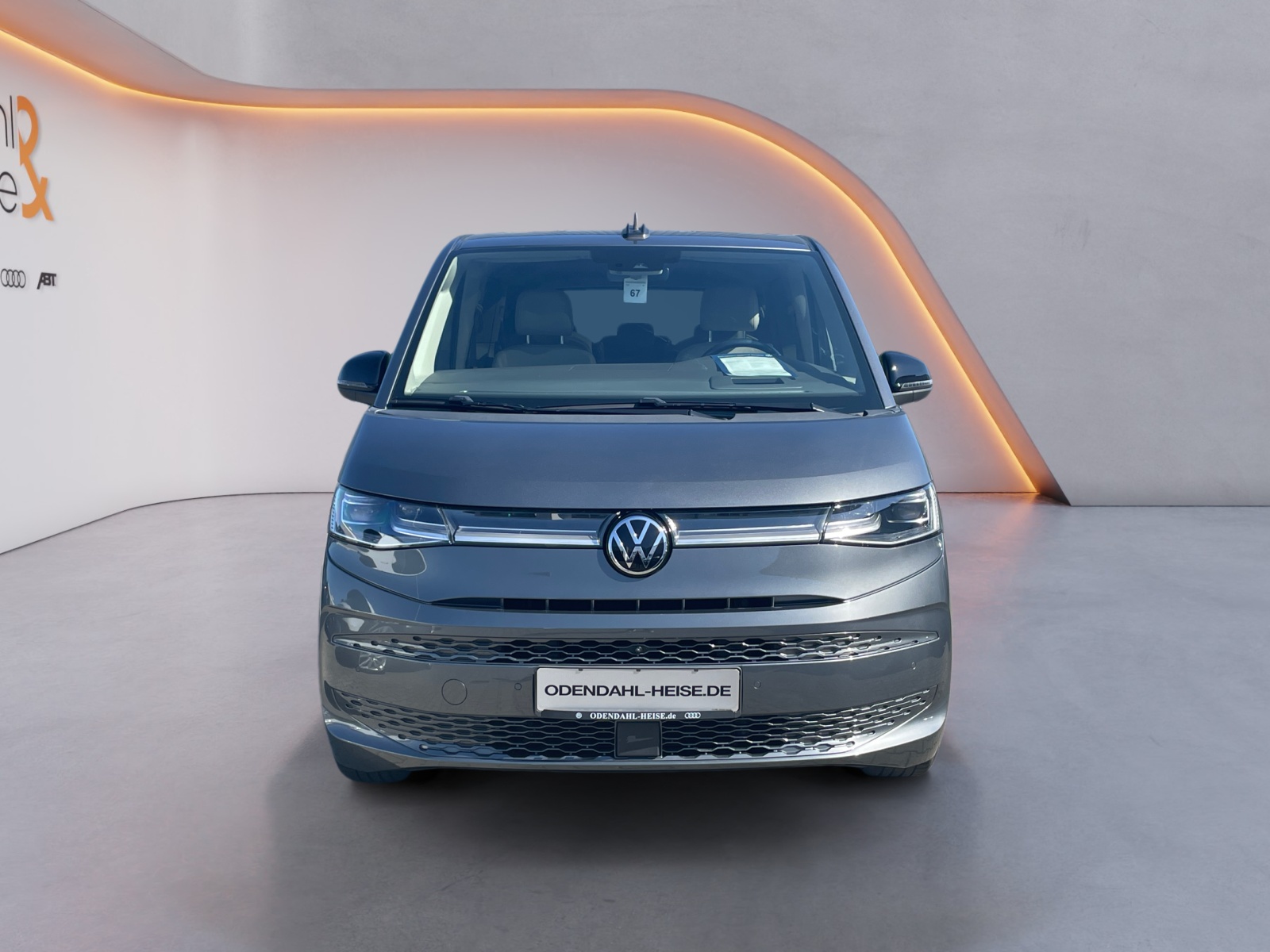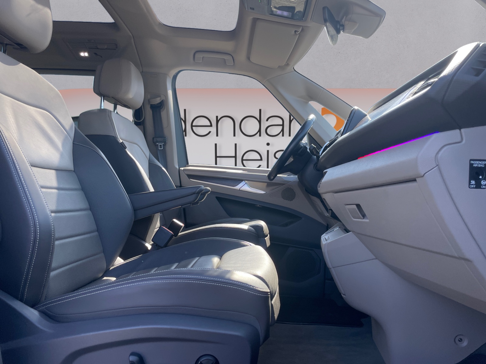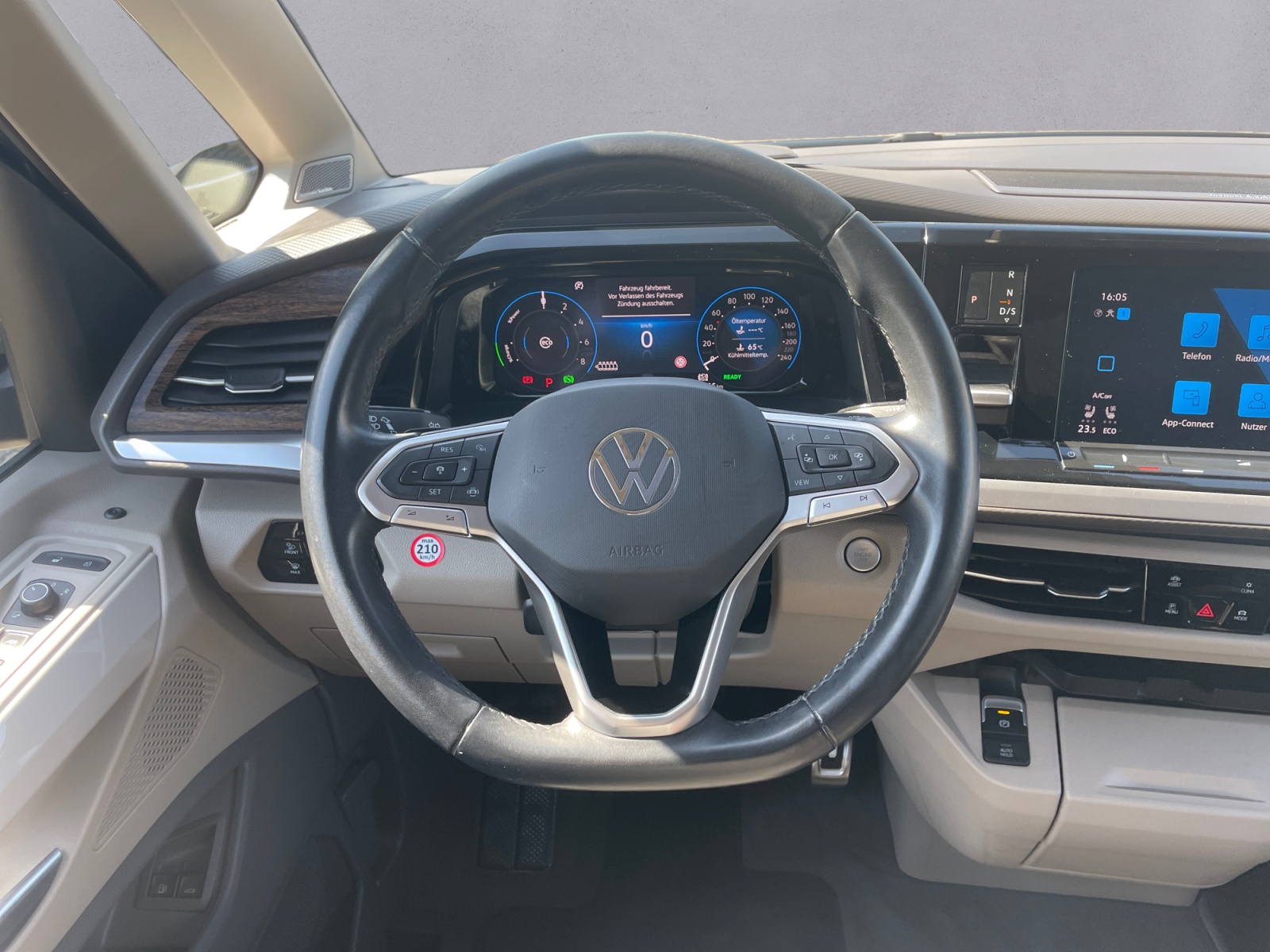 Vorbereitet für 'We Connect' und 'We Connect Plus', Navigationssystem 'Discover Pro' mit 25 4 cm (10') Touch-Farbdisplay inklusive 'Streaming & Internet', Panoramaglasdach abgedunkelt zweiteilig, Sitzheizung für beide Sitze im Fahrerhaus und die äußeren Sitze des Fahrgastraums (getrennt regelbar), Standheizung für Frontscheibenenteisungund Erwärmung/Lüftung des Fahrerhausesmit Funkfernbedienung, Umgebungsansicht 'Area View' inklusive Rückfahrkamera 'Rear View' und Parklenkassistent 'Park Assist', Automatische Distanzregelung ACC 'stop &go' mit Geschwindigkeitsbegrenzer, Spurwechselassistent 'Side Assist' inklusive 'Blind Spot Detection' Ausparkassistent und Ausstiegswarner, Soundsystem 'Harman Kardon' 13 Lautsprecher 840 Watt Gesamtleistung digitaler 16-Kanal-Verstärker Subwoofer, Bi-Color Sitzbezüge Sitzmittelbahnen inLeder 'Savona perforiert für AGR-Sitze Sitzwangen in Glattlederoptik, Parklenkassistent 'Park Assist' und Einparkhilfe im Front- und Heckbereich, Adaptive Fahrwerksregelung DCC (Dynamic Chassis Control), AGR ErgoComfort Sitze vorne in Leder inklusive Sitzbelüftung elektrisch verstellbar, AGR-Sitz elektrisch verstellbar vorn rechts mit 4-Wege-Kopfstütze und mit Memory- und Massagefunktion für Fahrer, AGR-Sitz elektrisch verstellbar vorn links mit 4-Wege-Kopfstütze und mit Memory- und Massagefunktion für Fahrer, Vordersitze mit aktiver Sitzbelüftung, Armlehnen beidseitig der Sitze (abnehm- und umsteckbar) und Klapptische an der Rückseite der Sitze in der 2. Sitzreihe, Mobiltelefon-Schnittstelle 'Comfort' mitinduktiver Ladefunktion, Scheiben im Fond abgedunkelt Seitenscheiben in Dämmglas, Elektrische Heckklappe (öffnend und schließend) mit 'Easy Open' und 'Easy Close'-Funktion, Zentralverriegelung mit schlüssellosem Schließ- und Startsystem 'Keyless Advanced' ohne Safesicherung, Adaptive Fahrwerksregelung DCC mit Standardfahrwerk, Proaktives Insassenschutzsystem (PreCrash Basic und Front), Fahrprofilauswahl für DCC, Head-Up-Display, Multifunktions-Lederlenkrad mit Schaltwippen, LED-Rückleuchten, Reifenkontrollanzeige (nach EU Typprüfung), Umfeldbeleuchtung im Türbereich mit Logoprojektion der Multivan Silhouette (bei Edition: mit 'Edition' Schriftzug), 3 Einzelsitze in der 3. Sitzreihe, 2 Einzelsitze in Fahrtrichtung in der 2. Sitzreihe, 4-Zylinder-Ottomotor 1 4L/110 KW TSI Hybrid Grundmotor ist: TH8/T9D, Verkehrszeichenerkennung, Notbremsassistent 'Front Assist' mit Fußgänger- und Radfahrererkennung, Schlechtwetterlicht (inklusive Abbiegelicht), Spurhalteassistent 'Lane Assist', Kraftstoffsystem Otto-Einspritzer mit rücklauffreiem Einspritzsystem, 6-Gang-Doppelkupplungsgetriebe DSG, IQ.LIGHT-LED-Matrix-Scheinwerfer mit LED-Tagfahrlicht, Leuchtweitenregulierung dynamisch mit dynamischem Kurvenfahrlicht, Seiten- und Kopfairbag für Fahrer und Beifahrer Kopfairbags für die äußerenSitzplätze hinten und Mittenairbag vorn, Abgasnorm Euro 6d ISC-FCM, Sprachbedienung, Frontantrieb, Airbags für Fahrer und Beifahrer mit Beifahrer-Airbag-Deaktivierung, 'Style', Fenster in der Schiebetür links, Fenster in der Schiebetür rechts, 3-Zonen Klimaanlage 'Air Care Climatronic' mit zusätzlichem Bedienteilim Fahrgastraum, Elektronisches Stabilisierungsprogramm und elektromechanischer Bremskraftverstärker, Hybrid-Antriebssystem PHEV, 2 USB-C-Schnittstellen vorn 4 USB-C-Ladebuchsen im Fahrgastraum, Multivan, Notrufsystem eCall, App-Connect inklusive App-Connect Wireless für Apple CarPlay und Android Auto, Bodenbelag im Fahrgastraum mit trittverstärktem Velours-Teppichboden, Außenspiegelgehäuse in Schwarz hochglanz, Digitaler Radioempfang (DAB+), Armlehnen für Fahrer- und Beifahrersitz beidseitig mit elektrischer Lendenwirbelstütze und Klapptisch, Ausweichunterstützung und Abbiegeassistent, Müdigkeitserkennung, Tagfahrlichtschaltung mit Assistenzfahrlicht sowie 'Coming home' und 'Leaving home'-Funktion, Chromleisten an den Seiten und am Heck, Umfeldbeleuchtung an der Heckklappe und Ambientebeleuchtung 30-farbig inklusiveFußraumbeleuchtung für die 2. Sitzreihe, 4 Zyl.Ottomotor 1 4L Aggr. 04E.C, Dynamische Fernlichtregulierung 'DynamicLight Assist' für LED-Matrix-Scheinwerfer,