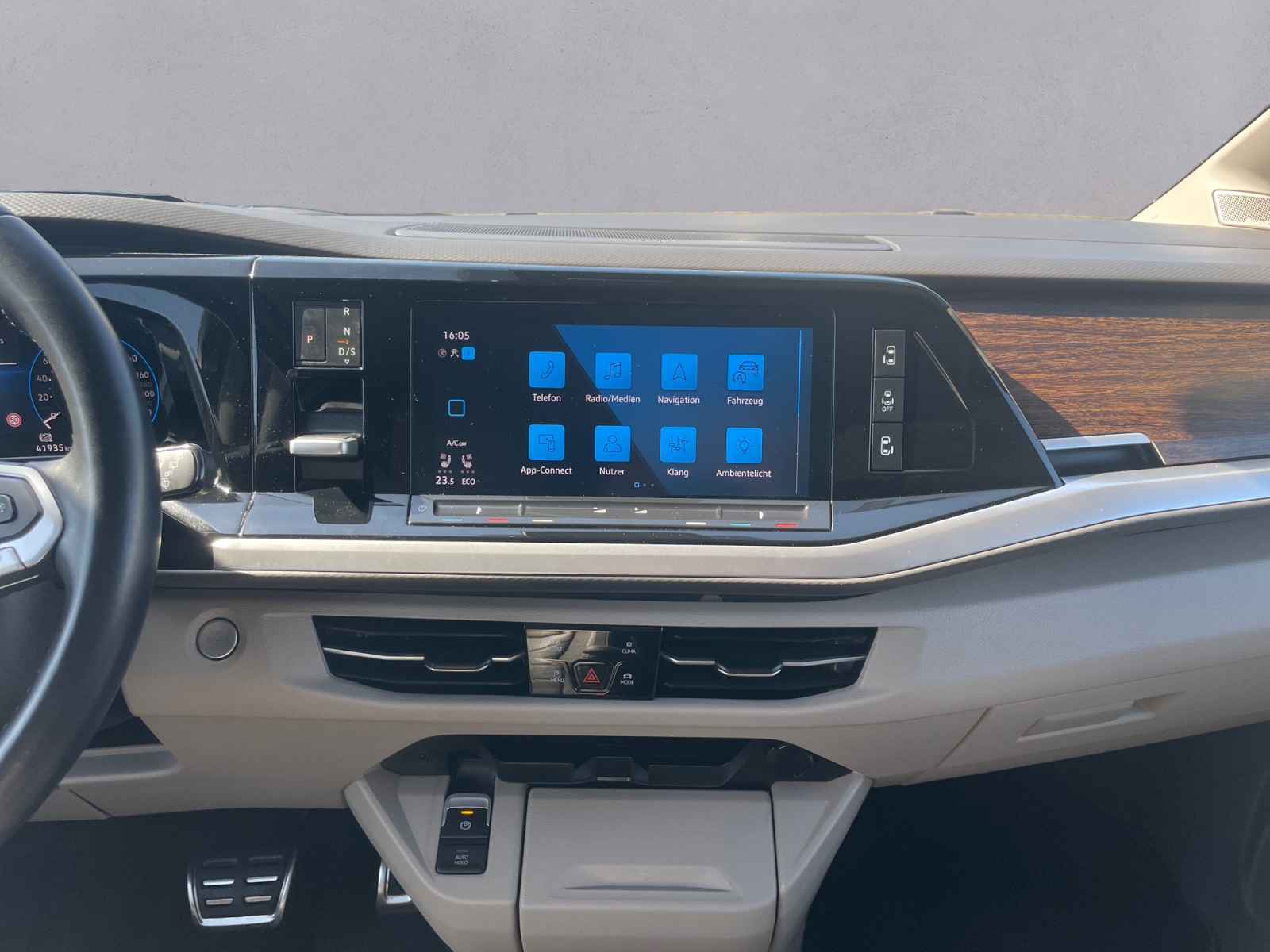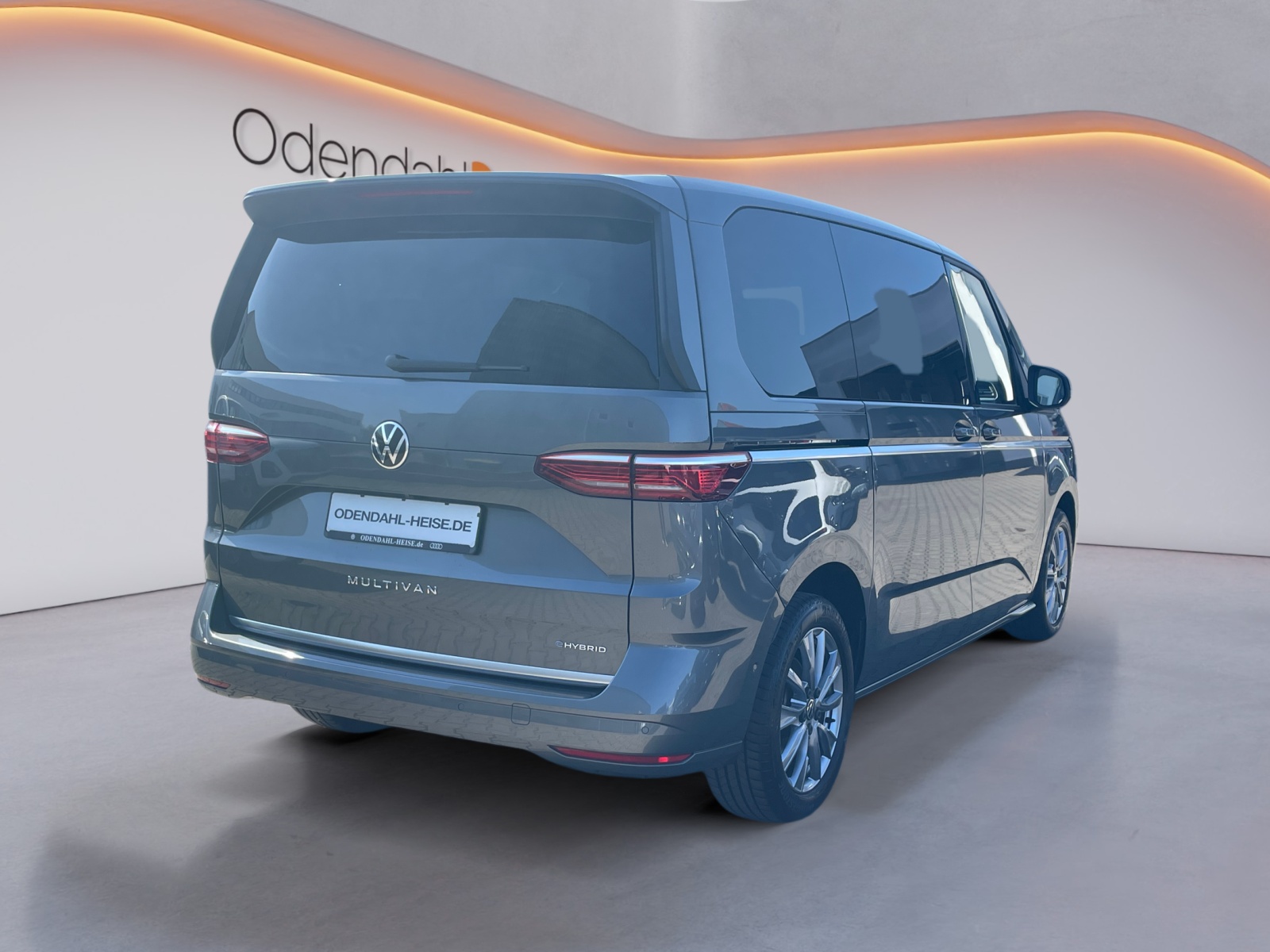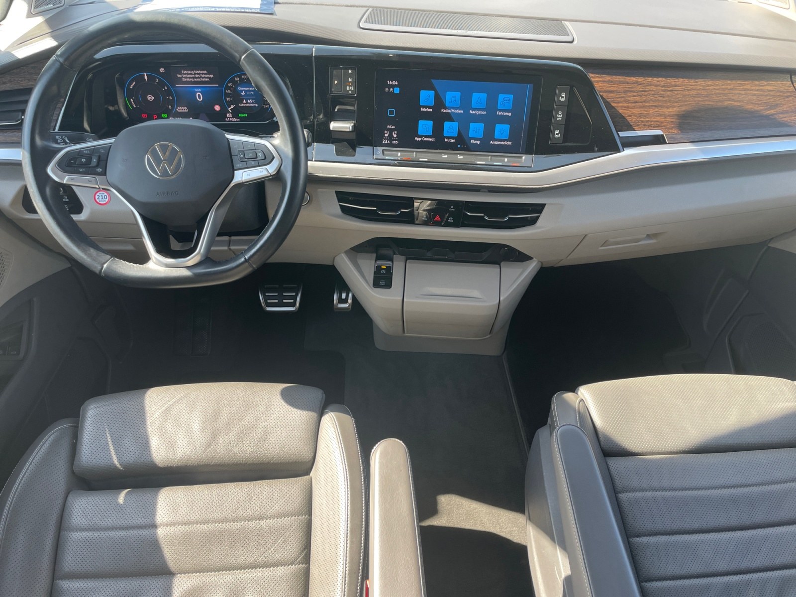 Vorbereitet für 'We Connect' und 'We Connect Plus', Navigationssystem 'Discover Pro' mit 25 4 cm (10') Touch-Farbdisplay inklusive 'Streaming & Internet', Panoramaglasdach abgedunkelt zweiteilig, Sitzheizung für beide Sitze im Fahrerhaus und die äußeren Sitze des Fahrgastraums (getrennt regelbar), Standheizung für Frontscheibenenteisungund Erwärmung/Lüftung des Fahrerhausesmit Funkfernbedienung, Umgebungsansicht 'Area View' inklusive Rückfahrkamera 'Rear View' und Parklenkassistent 'Park Assist', Automatische Distanzregelung ACC 'stop &go' mit Geschwindigkeitsbegrenzer, Spurwechselassistent 'Side Assist' inklusive 'Blind Spot Detection' Ausparkassistent und Ausstiegswarner, Soundsystem 'Harman Kardon' 13 Lautsprecher 840 Watt Gesamtleistung digitaler 16-Kanal-Verstärker Subwoofer, Bi-Color Sitzbezüge Sitzmittelbahnen inLeder 'Savona perforiert für AGR-Sitze Sitzwangen in Glattlederoptik, Parklenkassistent 'Park Assist' und Einparkhilfe im Front- und Heckbereich, Adaptive Fahrwerksregelung DCC (Dynamic Chassis Control), AGR ErgoComfort Sitze vorne in Leder inklusive Sitzbelüftung elektrisch verstellbar, AGR-Sitz elektrisch verstellbar vorn rechts mit 4-Wege-Kopfstütze und mit Memory- und Massagefunktion für Fahrer, AGR-Sitz elektrisch verstellbar vorn links mit 4-Wege-Kopfstütze und mit Memory- und Massagefunktion für Fahrer, Vordersitze mit aktiver Sitzbelüftung, Armlehnen beidseitig der Sitze (abnehm- und umsteckbar) und Klapptische an der Rückseite der Sitze in der 2. Sitzreihe, Mobiltelefon-Schnittstelle 'Comfort' mitinduktiver Ladefunktion, Scheiben im Fond abgedunkelt Seitenscheiben in Dämmglas, Elektrische Heckklappe (öffnend und schließend) mit 'Easy Open' und 'Easy Close'-Funktion, Zentralverriegelung mit schlüssellosem Schließ- und Startsystem 'Keyless Advanced' ohne Safesicherung, Adaptive Fahrwerksregelung DCC mit Standardfahrwerk, Proaktives Insassenschutzsystem (PreCrash Basic und Front), Fahrprofilauswahl für DCC, Head-Up-Display, Multifunktions-Lederlenkrad mit Schaltwippen, LED-Rückleuchten, Reifenkontrollanzeige (nach EU Typprüfung), Umfeldbeleuchtung im Türbereich mit Logoprojektion der Multivan Silhouette (bei Edition: mit 'Edition' Schriftzug), 3 Einzelsitze in der 3. Sitzreihe, 2 Einzelsitze in Fahrtrichtung in der 2. Sitzreihe, 4-Zylinder-Ottomotor 1 4L/110 KW TSI Hybrid Grundmotor ist: TH8/T9D, Verkehrszeichenerkennung, Notbremsassistent 'Front Assist' mit Fußgänger- und Radfahrererkennung, Schlechtwetterlicht (inklusive Abbiegelicht), Spurhalteassistent 'Lane Assist', Kraftstoffsystem Otto-Einspritzer mit rücklauffreiem Einspritzsystem, 6-Gang-Doppelkupplungsgetriebe DSG, IQ.LIGHT-LED-Matrix-Scheinwerfer mit LED-Tagfahrlicht, Leuchtweitenregulierung dynamisch mit dynamischem Kurvenfahrlicht, Seiten- und Kopfairbag für Fahrer und Beifahrer Kopfairbags für die äußerenSitzplätze hinten und Mittenairbag vorn, Abgasnorm Euro 6d ISC-FCM, Sprachbedienung, Frontantrieb, Airbags für Fahrer und Beifahrer mit Beifahrer-Airbag-Deaktivierung, 'Style', Fenster in der Schiebetür links, Fenster in der Schiebetür rechts, 3-Zonen Klimaanlage 'Air Care Climatronic' mit zusätzlichem Bedienteilim Fahrgastraum, Elektronisches Stabilisierungsprogramm und elektromechanischer Bremskraftverstärker, Hybrid-Antriebssystem PHEV, 2 USB-C-Schnittstellen vorn 4 USB-C-Ladebuchsen im Fahrgastraum, Multivan, Notrufsystem eCall, App-Connect inklusive App-Connect Wireless für Apple CarPlay und Android Auto, Bodenbelag im Fahrgastraum mit trittverstärktem Velours-Teppichboden, Außenspiegelgehäuse in Schwarz hochglanz, Digitaler Radioempfang (DAB+), Armlehnen für Fahrer- und Beifahrersitz beidseitig mit elektrischer Lendenwirbelstütze und Klapptisch, Ausweichunterstützung und Abbiegeassistent, Müdigkeitserkennung, Tagfahrlichtschaltung mit Assistenzfahrlicht sowie 'Coming home' und 'Leaving home'-Funktion, Chromleisten an den Seiten und am Heck, Umfeldbeleuchtung an der Heckklappe und Ambientebeleuchtung 30-farbig inklusiveFußraumbeleuchtung für die 2. Sitzreihe, 4 Zyl.Ottomotor 1 4L Aggr. 04E.C, Dynamische Fernlichtregulierung 'DynamicLight Assist' für LED-Matrix-Scheinwerfer,