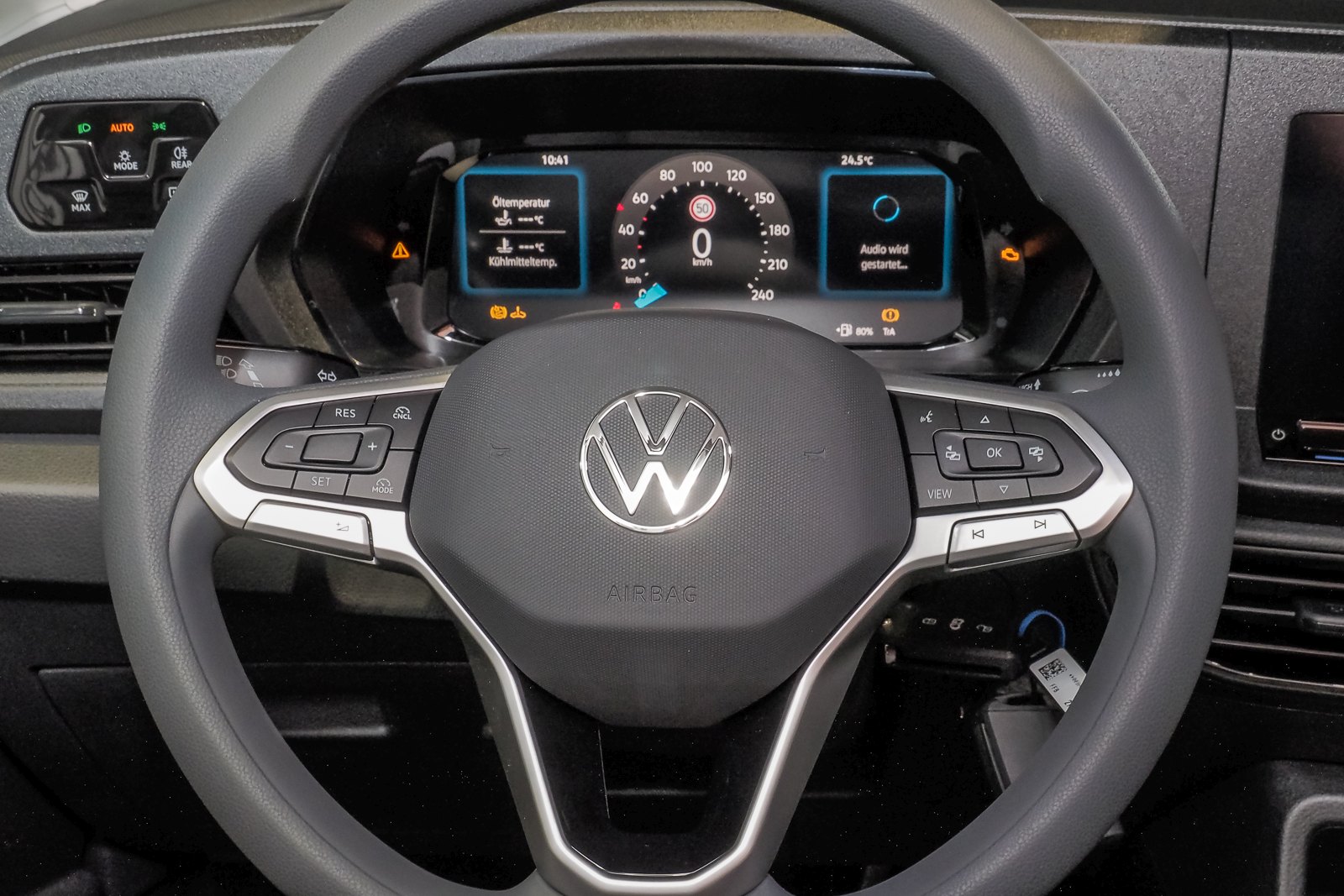 Anhängevorrichtung. starr (einschließlich Gespannstabilisierung), Dachreling. schwarz, Armlehnen für beide Vordersitze, Handschuhfach mit abschließbarer Klappe. beleuchtet, Ladeflächenbelag aus Holz (Anthrazit): mehrfach verleimtes Sperrholz. Stärke 10 mm. rutschfest, Hohe Laderaumverkleidung aus Kunststoff, Außenspiegel. elektrisch einstell- und beheizbar, 2 12-Volt-Steckdosen. eine im Laderaum. eine in der Instrumententafel, Dachgalerie im Fahrerhaus (Ablageschale am Dachhimmel mit 2 Dachhaltegriffen im Fahrerhaus), 4 Fahrzeugschlüssel, App-Connect, Ganzjahresreifen 205/60 R16 96H XL Rollwiderstandsoptimiert, Klimaanlage mit manueller Regelung, Kältemittel R1234yf, Robuststoffsitzbezüge. Dessin 'Robusta', Top Deal, Langer Radstand, Fahrerhaustüren, Einbau Differenzierung für Getriebe 'MQ 281' -- Fahrzeugteile --, Kraftstoffsystem Diesel,Schriftzüge für Typ-/Modellbezeichnung,Zulässiges Gesamtgewicht 2.300 kg, Gewichtsbereich 2 nur Einbausteuerung keine Bedarfsprognose, -VW-Marken-/Klassen spezifische Merkmale, Bremskraftverstärker,Tire Mobility Set: 12-Volt-Kompressor und Reifendichtmittel, Hinweisschilder ohne Ländergruppe, 15' Scheibenbremse hinten, Servotronic (geschwindigkeitsabhängige Servolenkung), Radvollblenden, Radschrauben ohne Radsicherungen, Frontantrieb, Serienkraftstoff-Erstbefüllung (5 Liter), 16'-Scheibenbremsen vorn, Fahrzeugklassen-Differenzierung -2KA-,Stoßfänger in Grau,Trennwand (hoch) ohne Fenster, Mittelkonsole mit 2 universellen Getränkehaltern,Höheneinstellung für Sitz links. manuell, Türverkleidung und Armauflage in Kunststoff, Dreipunkt-Automatiksicherheitsgurte vorn mit Gurthöhenverstellung und elektrischen Gurtstraffern, Heckflügeltüren ohne Fensterausschnitte. asymmetrisch geteilt.,Akustik-Paket Standard für Fahrerhaus, Verbundglas-Frontscheibe in Wärmeschutzglas, Zentralverriegelung mit Funkfernbedienung und Innenbetätigung ohne Safesicherung, Abgaskonzept. WLTP3 N1-II//EU6EA,Teppichbodenbelag im Fahrerhaus, Zulassung als LKW, UWB fähiges Land und Trägerfrequenz 433.92 bis 434.42Mhz,Schiebetür rechts im Lade-/Fahrgastraum,Sonnenblenden ohne Spiegel mit Tickettasche auf Fahrerseite plus Airbag -Label auf der Sonnenblende,Außenspiegelgehäuse und Türgriffe in Schwarz. Schiebetürschiene in Silber, Luftausströmer. vorn in mattem Schwarz, Schalthebel in Kunststoff,Zus. Staubschutz-Dichtung außen,Digital Cockpit, Start-Stopp-System mit Bremsenergie-Rückgewinnung, Cockpit-Blende matt, Einparkhilfe im Heckbereich,Drehstromgenerator 140 A, H7-Halogendoppelscheinwerfer,Scheibenwischer-Intervallschaltung mit Lichtsensor, Leuchtweitenregulierung, 4 Lautsprecher vorn, Rückleuchten,Nicht Heissland,Fahrlichtschaltung automatisch. mit Tagfahrlicht, Innenraumbeleuchtung im Laderaum. 1 Leuchte,Nichtraucherausführung, Warnton und -leuchte für nicht angelegte Sicherheitsgurte vorn,Betriebsspannung 12 V, Mobiltelefonanbindung über Bluetooth, Cargo, Rechtsverkehr, Bauteilesatz ohne länderspezifische Bauvorschrift, Betriebserlaubnis Nachtrag, 4 Stahlräder 6.5 J x 16. in Schwarz, Keine Aktionsausführung,Ablenkungs- und Müdigkeitserkennung, Regionscode ' ECE ' für Radio, Kein Sonderfahrzeug.Standard-Ausführung, Variante Grundausstattung, Dämpfung vorn, 6-Gang-Schaltgetriebe, Fahrzeuge mit besonderen Produktaufwertungsmaßnahmen, Vorbereitung Alcohol Interlock,Leergewichtsbereich Standard,Vorderachsgewicht Standard, Hinterachsgewicht Standard,Batterie 420A (70Ah), Kastenwagen,Linkslenker, Federbereich 31 nur Einbausteuerung keine Bedarfsprognose, Mit prädiktiven Speedlimiter (pLIM), 4-Zyl.Turbodieselmotor 2.0 L/75 KW TDI Common-Rail Grundmotor ist: T29/TQ4/T0P/T6M/T1Q, Mit UNECE CS&SU, Standard-Batterie/Generator, Notrufsystem eCall. Voraussetzung: Verfügbarkeit benötigter Mobilfunknetze, Sitz links und rechts. in der 1. Sitzreihe,Wartungsintervallverlängerung, Serviceanzeige 30000 km oder 2 Jahre ( variabel ),Wärmeschutzglas (grün),Verkehrszeichenerkennung, 4 Zyl.Dieselmotor 2.0L Aggr. 05L.C, Instrumenteneinsatz (km/h). Anzeigen für Geschwindigkeit. Gesamt-/Tagesstrecke. Drehzahl. Kraftstoffvorrat und Uhrzeit, Extern. USB Typ-C Datenbuchse(n) mit erhöhter Ladeleistung, Dämpfung hinten. Hochstandsfahrwerk, Reifen ohne Festlegung der Reifenmarke, Fußhebelwerk 'Standard',
