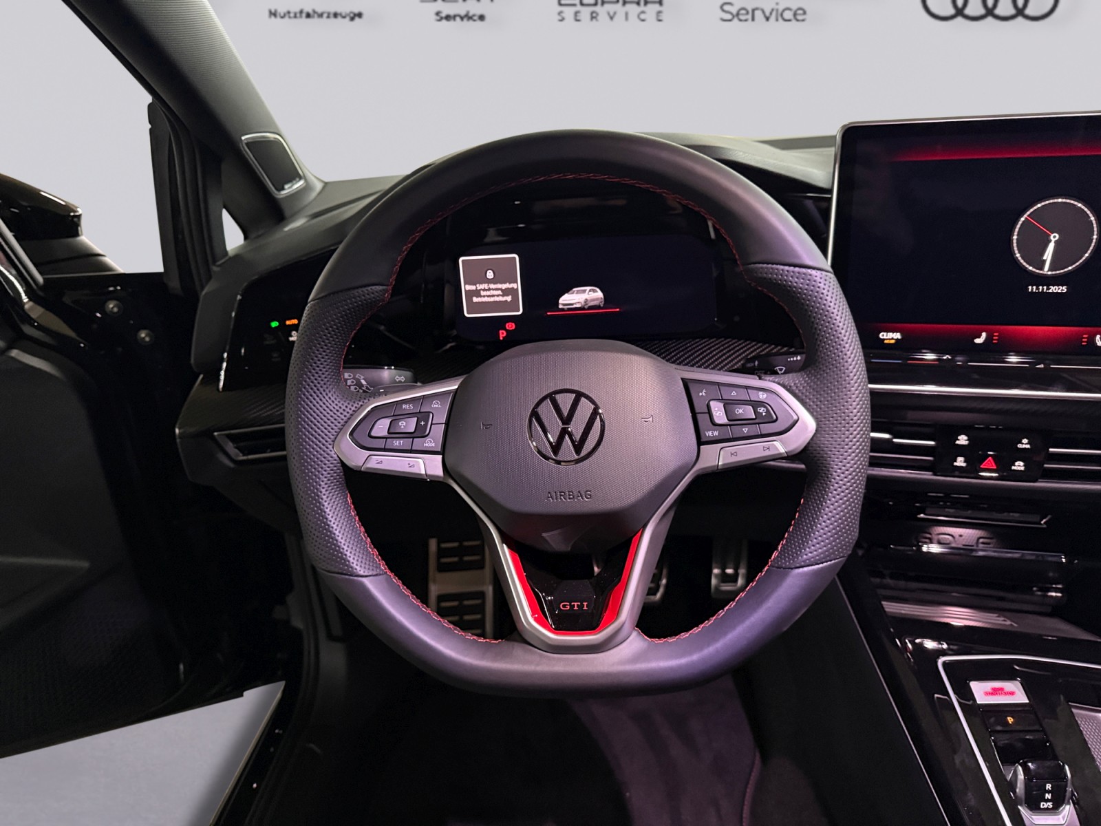Winterräder 'Bergamo' (zusätzlich) in Silber lackiert. 4 Leichtmetallräder 7.5 J x 18. Winterreifen 225 / 40 R 18 V, Spurwechselassistent 'Side Assist'. Ausparkassistent und Ausstiegswarnung, Dekoreinlagen in Carbon für Instrumententafel und Türverkleidungen vorn, Soundsystem 'Harman Kardon'. 8+1 Lautsprecher. 480 Watt Gesamtleistung. 12-Kanal-Verstärker. Subwoofer, Umgebungsansicht 'Area View' inkl. Rückfahrkamera 'Rear View', Adaptive Fahrwerksregelung DCC, Warmenau 8 J x 19 in Schwarz. Volkswagen R Reifen 235/35 R 19, Komfortpaket inkl. 'Park Assist Pro' und 'Side Assist', 'Business Premium'-Paket, Design-Paket 'Black Style' inkl. IQ.LIGHT - LED-Matrix-Scheinwerfer, GTI-Performance-Paket, Radstand, Stabilisator hinten, Kraftstoffsystem Otto-Einspritzer mit rücklauffreiem Einspritzsystem, Doppelkupplungsgetriebe DQ381, Vierlenkerachse, Schriftzugsatz 'GTI', Textilfußmatten vorn und hinten, Elektronisches Stabilisierungsprogramm und elektromechanischer Bremskraftverstärker,Aktivkohlebehälter (EVAP), Tire Mobility Set: 12-Volt-Kompressor und Reifendichtmittel, Umfeldbeleuchtung mit Lichtprojektion, Scheibenbremsen hinten, Scheibenbremsen vorn, Radsicherungen mit erweitertem Diebstahlschutz, Bordwerkzeug,Verbandtasche. Warndreieck und Warnweste, Frontantrieb, Vorderachs-Differenzialsperre, Serienkraftstoff-Erstbefüllung,Fahrzeugklassen-Differenzierung -5H0-,Stoßfänger in 'Clubsport'-Optik. Lufteinlass in Wabenstruktur, ISOFIX-Halteösen für Kindersitze auf den äußeren Rücksitzen sowie auf dem Beifahrersitz. i-Size-kompatibel, Beifahrersitzlehne nicht umklappbar, Kopfstützen vorn im Sitz integriert, Türverkleidungen, Rücksitzbank ungeteilt. Lehne asymmetrisch geteilt umklappbar. mit Mittelarmlehne, Dreipunkt-Automatiksicherheitsgurte vorn mit Höheneinstellung und Gurtstraffer, Dreipunkt-Automatiksicherheitsgurte für die äußeren Rücksitzplätze,Entriegelung Heckklappe/Deckel hinten von außen, Abbiegebremsfunktion und Ausweichunterstützung, Frontscheibe in Verbundsicherheitsglas. wärme- und geräuschdämmend, Airbag für Fahrer und Beifahrer. mit Beifahrerairbag-Deaktivierung, Abgaskonzept. WLTP3 M1. N1-I//EU6EB, Außenspiegel Fahrerseite asphärisch. Beifahrerseite konvex,Make-up-Spiegel beleuchtet in den Sonnenblenden,Mittelarmlehne vorn höhen- und längseinstellbar, Dachhimmel, Schalthebelknopf/-Griff in Alu, LED-Leuchte im Fußraum vorn. Lichtfarbe wählbar, Außenspiegel elektrisch einstell-. anklapp-. beheizbar. mit Memory-Funktion und Beifahrerspiegelabsenkung,12-V-Steckdose im Gepäckraum,Digital Cockpit Pro. mehrfarbig. verschiedene Info-Profile wählbar, Reifenkontrollanzeige, Start-Stopp-System mit Bremsenergie-Rückgewinnung, Lendenwirbelstützen vorn, Motorenstart Standard,Drehstromgenerator 140 A, Notbremsassistent 'Front Assist' mit Fußgänger- und Radfahrererkennung, 2 LED-Leseleuchten vorn und 2 hinten, Automatische Distanzregelung ACC, Nebelschlusslicht einseitig. Rückfahrlicht beidseitig, Doppelton-Signalhorn, Nicht Heissland, Diversity-Antenne für FM-Empfang, Fahrlichtschaltung automatisch. mit LED-Tagfahrlicht sowie Begrüßungsund Verabschiedungslicht, Nichtraucherausführung - Ablagefach und 12-V-Steckdose vorn,Warnton und -leuchte für nicht angelegte Gurte vorn und hinten,App-Connect Wireless für Apple CarPlay und Android Auto, Betriebsspannung 12 V, Telefonschnittstelle mit induktiver Ladefunktion, Top-Sport-Ausstattung, Rechtsverkehr, Typprüfland Deutschland, Bauteilesatz ohne länderspezifische Bauvorschrift, Betriebserlaubnis Nachtrag, 4-Zylinder-Ottomotor 2.0 l TSI. 221 kW, Keine Aktionsausführung,Ablenkungs- und Müdigkeitserkennung, Regionscode ' ECE ' für Radio,Kein Sonderfahrzeug.Standard-Ausführung, Normal-Lackierung, Variante Grundausstattung, 7-Gang-Automatikgetriebe oder DSG Beachtung: Fam. EDF, Außen-Sound Standard, Fahrzeuge mit besonderen Produktaufwertungsmaßnahmen, Vorbereitung Alcohol Interlock, Leergewichtsbereich Standard, Batterie 420A (70Ah), Kurzheck, Klimaanlage 'Air Care Climatronic' mit Aktiv-Kombifilter. Bedienelementen hinten und 3-Zonen-Temperaturregelung, Kältemittel R1234yf, Linkslenker, Federbereich 53 nur Einbausteuerung keine Bedarfsprognose, Geschwindigkeitsbegrenzer mit vorausschauender Regelung, Sitzmittelbahnen der Vordersitze und der äußeren Rücksitzplätze in Mikrovlies 'ArtVelours', Mit UNECE CS&SU, Batterie/Generator Kapazität Standard, Notruf-Service. Voraussetzung: Verfügbarkeit benötigter Mobilfunknetze, Top-Sportsitze vorn, Wartungsintervallverlängerung, Serviceanzeige 30000 km oder 2 Jahre ( flexibel ), Chrom-Applikationen an Spiegeleinstellund Fensterheberschaltern. Chromleisten an den Auströmern, Multifunktionskamera, Ambientebeleuchtung 30-farbig. Ablagefach in der Mittelkonsole vorn beleuchtet, Verkehrszeichenerkennung, Digitaler Radioempfang DAB+, Progressivlenkung, 4-Zylinder-Ottomotor 2.0 l, Kombi-Instrument mit elektronischem Tachometer. Kilometer- und Tageskilometerzähler. Drehzahlmesser, 2 USB-C-Schnittstellen vorn. 2 USB-C-Ladebuchsen an der Mittelkonsole hinten Ladeleistung bis zu 45 W, Berganfahrassistent, Elektronische Parkbremse inkl. Auto-Hold-Funktion, Entriegelung Hintersitz Standard, Pedale in Edelstahl gebürstet, Fußgängerschutzmaßnahmen erweitert,