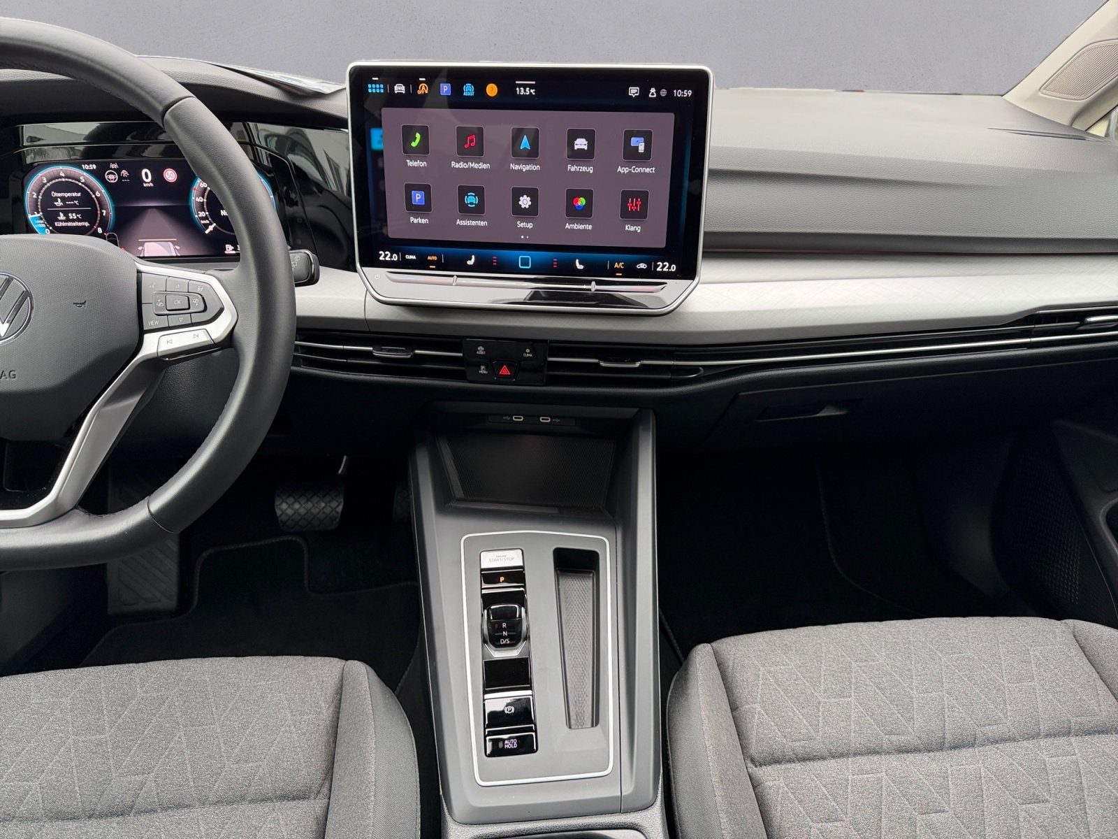 Klimaanlage 'Air Care Climatronic' mit Aktiv-Kombifilter Bedienelementen hinten und 3-Zonen-Temperaturregelung, Head-up-Display, Ambientebeleuchtung 30-farbig, Komfortpaket inkl. Parkassistent 'Park Assist Plus', LED-Plus-Scheinwerfer, LED-Rückleuchten, Volkswagen Logo vorn Leiste zwischen den Scheinwerfern sowie Türgriffmulden beleuchtet, Multifunktionslenkrad in Leder beheizbar mit Schaltwippen, Seitenscheiben hinten und Heckscheibe abgedunkelt, Schlüsselloses Schließ- und StartsystemKeyless Entry mit Safe-Sicherung, Kopf- und Seitenairbags vorn und hinten Center-Airbag, Fahrassistent 'Travel Assist' Spurhalteassistent 'Lane Assist' und 'Emergency Assist', Diebstahlwarnanlage mit Innenraumüberwachung Back-up-Horn und Abschleppschutz, Navigationssystem, Proaktives Insassenschutzsystem, Automatische Distanzregelung ACC, Spurwechselassistent 'Side Assist' Ausparkassistent und Ausstiegswarnung, App-Connect Wireless für Apple CarPlay und Android Auto, Parkassistent 'Park Assist Plus' inkl. Einparkhilfe, Infotainment-System mit 32-cm-Display (12 9 Zoll), 4-Zylinder-Ottomotor 1 5 l TSI 110 kW, Ablenkungs- und Müdigkeitserkennung, Geschwindigkeitsbegrenzer, Verkehrszeichenerkennung, Digitaler Radioempfang DAB+, Komfortsitze vorn, Berganfahrassistent, Elektronische Parkbremse inkl. Auto-Hold-Funktion, 2 USB-C-Schnittstellen vorn 2 USB-C-Ladebuchsen an der Mittelkonsolehinten Ladeleistung bis zu 45 W, Fußgängerschutzmaßnahmen erweitert, Hybrid-Antriebssystem MHEV, Elektronisches Stabilisierungsprogramm und elektromechanischer Bremskraftverstärker, Umfeldbeleuchtung mit Lichtprojektion, Servolenkung elektromechanisch, ISOFIX-Halteösen für Kindersitze auf denäußeren Rücksitzen sowie auf dem Beifahrersitz i-Size-kompatibel, Rücksitzbank ungeteilt Lehne asymmetrisch geteilt umklappbar mit Mittelarmlehne, Dachreling schwarz, Frontscheibe in Verbundsicherheitsglas wärme- und geräuschdämmend, Abbiegebremsfunktion und Ausweichunterstützung, Innenspiegel abblendbar, Abgaskonzept WLTP3 M1 N1-I//EU6EA, Sicherheitsoptimierte Kopfstützen vorn, Außenspiegel elektrisch einstell- anklapp- beheizbar mit Memory-Funktionund Beifahrerspiegelabsenkung, Digital Cockpit Pro mehrfarbig verschiedene Info-Profile wählbar, Notbremsassistent 'Front Assist' mit Fußgänger- und Radfahrererkennung, Telefonschnittstelle 'Comfort' mit induktiver Ladefunktion, Bitte informieren Sie sich vorab über die Verfügbarkeit von dem Fahrzeug!,