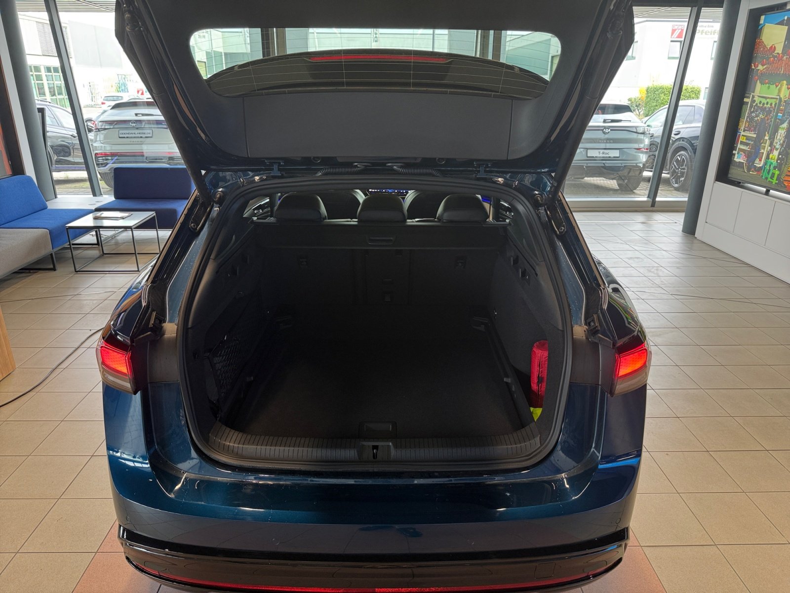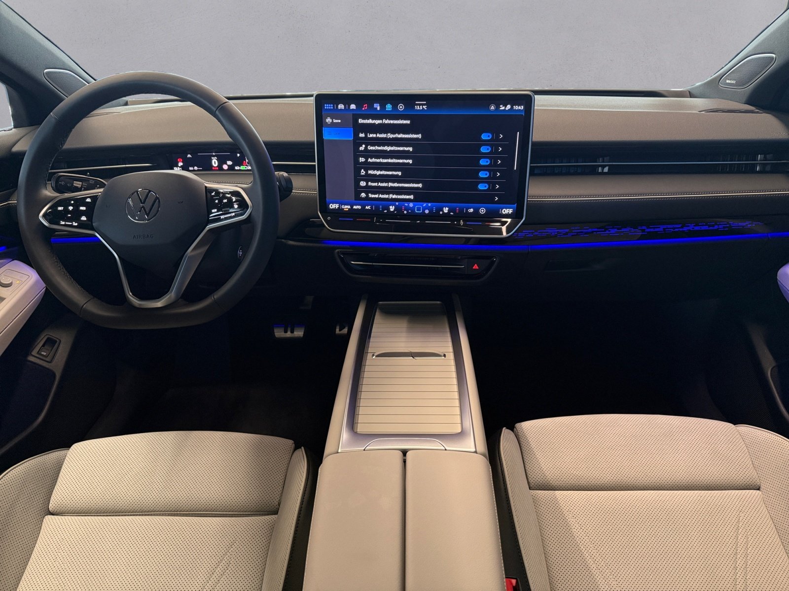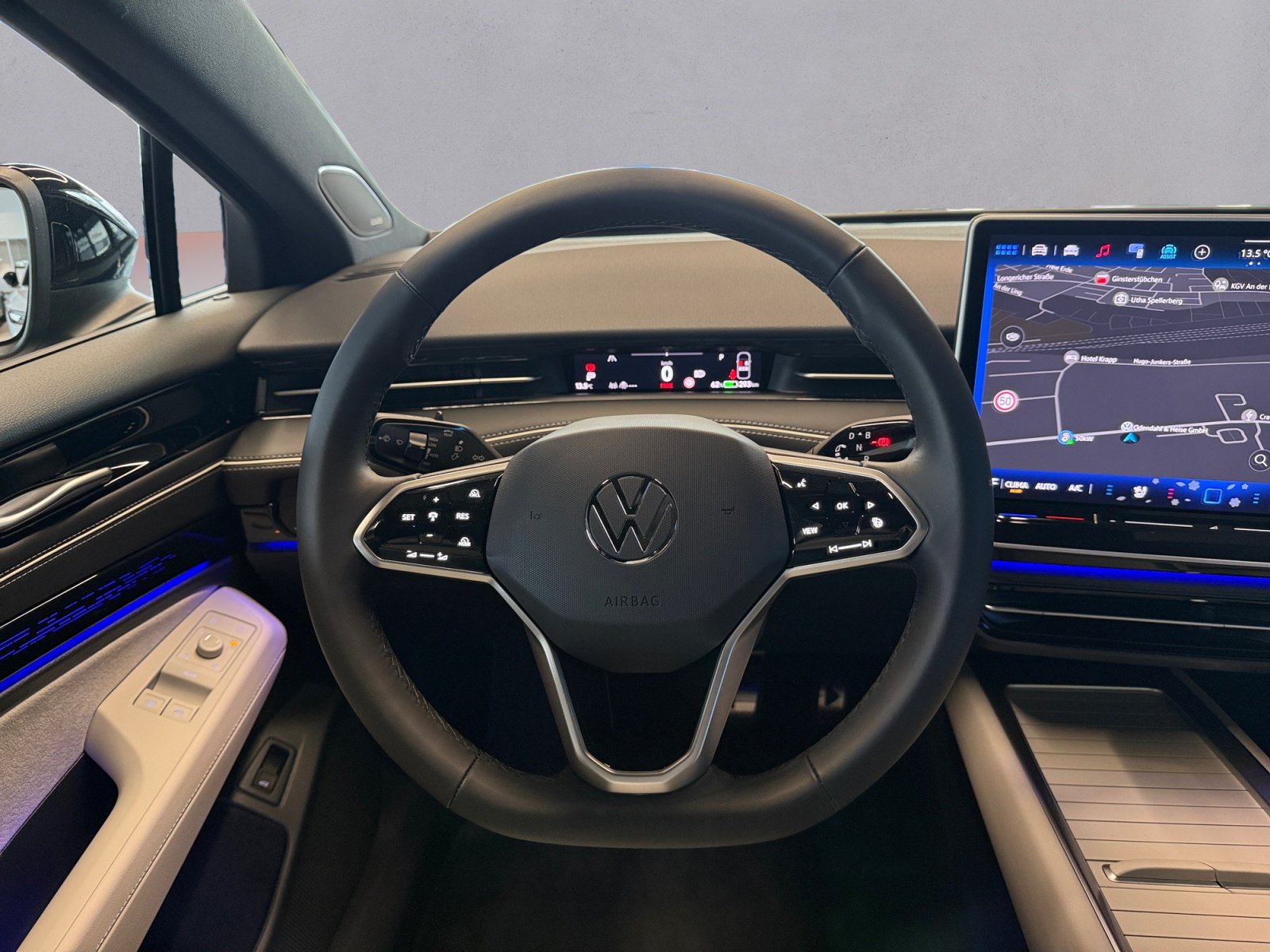 Exterieurpaket 'Plus' inkl. 'Smart Glas'-Panoramadach, Interieurpaket 'Plus', Komfortpaket inkl. Navigationssystem 'Discover Pro Max', Assistenzpaket 'IQ.DRIVE', Mataró 8 5 J x 21 / 9 J x 21 in Schwarz/glanzgedreht Volkswagen R Reifen 235/40 R21 / 265/35 R 21, Winterräder 'Hudson' (zusätzlich) 8 J x 19 vorn 8 5 J x 19 hinten Winterreifen 235/50 R 19 T/255/45 R 19 T, Design-Paket 'Black Style', Wärmepumpe zur Reichweitenoptimierung, 'Clever Cargo'-Paket, Stabilisator vorn, Stabilisator hinten, Fertigungsablauf Standard, o.b.Abgas, Mit besondere Anforderungen an die Lenksäulenverriegelung, Textilfußmatten vorn und hinten, Bordliteratur in Deutsch (Deutschland), Gewichtsbereich 10 nur Einbausteuerung keine Bedarfsprognose, Spezielles Typschild für EG für M1-Pkw, Umfeldbeleuchtung mit Logoprojektion, Trommelbremsen hinten, Scheibenbremsen vorn, Radsicherungen mit erweitertem Diebstahlschutz, Verbandtasche Warndreieck und Warnweste, Heckantrieb, Ohne Systeme für den Fahrzeugzugang, Stoßfänger in Wagenfarbe, ISOFIX-Halteösen für Kindersitze auf den äußeren Rücksitzen sowie auf dem Beifahrersitz i-Size-kompatibel, Netztrennwand, Mittelkonsole, Gepäckraumboden in 2 Höhen einstellbar für ebene Ladefläche, Rücksitzlehne asymmetrisch geteilt umklappbar mit Durchlademöglichkeit und Mittelarmlehne 2 Becherhalter, Dreipunkt-Automatiksicherheitsgurte vorn mit Höheneinstellung und Gurtstraffer, Dachreling schwarz, Dreipunkt-Automatiksicherheitsgurte für die äußeren Rücksitzplätze, Abbiegebremsfunktion und Ausweichunterstützung, Schlüsselloses Schließ- und Startsystem Keyless Entry mit berührungsloser Ver- und Entriegelung SAFE-Verriegelung, Innenspiegel automatisch abblendend, Ohne Bidirektionales Laden, Ohne Armlehnen f.Vordersitze, Ohne besondere Karosseriemaßnahmen, UWB fähiges Land und Trägerfrequenz 433 92 bis 434 42Mhz, Fahrzeugklassen-Differenzierung -14B-, Außenspiegel Fahrerseite asphärisch Beifahrerseite konvex, Ohne Oberflächenschutz mit zusätzlichen Transportschutzmaßnahmen, Getriebe Übersetzung 7 915, Make-up-Spiegel beleuchtet in den Sonnenblenden, Sicherheitsoptimierte Kopfstützen vorn, Ohne Feuerlöscher, Außenspiegelgehäuse schwarz lackiert, Außenspiegel elektrisch einstell- anklapp- und beheizbar mit Beifahrerspiegelabsenkung, Ladekabel Mode 3 Typ 2 16 A, Spurwechselassistent 'Side Assist' Ausparkassistent und Ausstiegswarnung, Diebstahlwarnanlage mit Innenraumüberwachung Back-up-Horn und Abschleppschutz, Elektrische Luftzusatzheizung, Reifenkontrollanzeige, Proaktives Insassenschutzsystem, Radio, DC/DC Wandler 3 0 KW, Notbremsassistent 'Front Assist' mit Fußgänger- und Radfahrererkennung, Automatische Distanzregelung ACC,mit Waschwasser-Standanzeige, Doppelton-Signalhorn, Diversity-Antenne für FM-Empfang, Zellmodul L, Warnton und -leuchte für nicht angelegte Gurte vorn und hinten, Ohne beheizbare Scheibenwaschdüsen, App-Connect Wireless für Apple CarPlay und Android Auto, 12-V-Steckdose im Gepäckraum, Pro S, Rechtsverkehr, Typprüfland Deutschland, Bauteilesatz ohne länderspezifische Bauvorschrift, Betriebserlaubnis Nachtrag, Elektro-Motor: Höchste konsolidierte Nutzleistung/Nutzleistung 210 KW GMO: N22/N25/T39/T65/T23/T3P/TI3/T03/T2V/T5J, Keine Aktionsausführung, Vorbereitet für 'VW Connect' und 'VW Connect Plus' Online-Update-Fähigkeit (außer für Sonderumbauten), Ablenkungs- und Müdigkeitserkennung, Regionscode ' ECE ' für Radio, CCS-Ladedose, Ohne Ladekabel, Kein Sonderfahrzeug Standard-Ausführung, Getriebe für Elektroantrieb ( 1-Gang ), Drehmoment 545 Nm Grundmotor ist: N22/T3P, e-Sound, Fahrzeuge ohne besonderen Produktaufwertungsmaßnahmen, Vorbereitung Alcohol Interlock, Car2X, Leergewichtsbereich Standard, Hinterachsgewicht Standard, Ohne Schnittstelle für externe Nutzung, Batterie 280A (46Ah), Hochvolt-Batterie 91 kWh (brutto), Ohne Stadt / Kreuzungsassistent, Variant/Avant, 11 kW AC-Ladeleistung (Wechselstrom), Augmented-Reality-Head-up-Display, Federbereich 07 nur Einbausteuerung keine Bedarfsprognose, Linkslenker, Maximale DC-Ladeleistung (Gleichstrom) abhängig von der Antriebsbatterie, Geschwindigkeitsbegrenzer mit vorausschauender Regelung, Elektro-Motor Aggr.0ET.A, Mit UNECE CS&SU, Notruf-Service Laufzeit 10 Jahre ab Erstauslieferung Voraussetzung: Verfügbarkeit benötigter Mobilfunknetze, Sprachassistent IDA, Verkehrszeichenerkennung, Digitaler Radioempfang DAB+, Instrumenteneinsatz Anzeige in KM/H, 2 USB-C-Schnittstellen vorn 2 USB-C-Ladebuchsen an der Mittelkonsole hinten Ladeleistung bis zu 45 W, Entriegelung Hintersitz mechanisch, Softwareverbund Ausführung 15 UN-ECE, Pedale in Edelstahl im 'Play/Pause'-Design, Serviceanzeige 2 Jahre (fest) ohne km Elektro-Fahrzeug, Aktive Frontklappe,