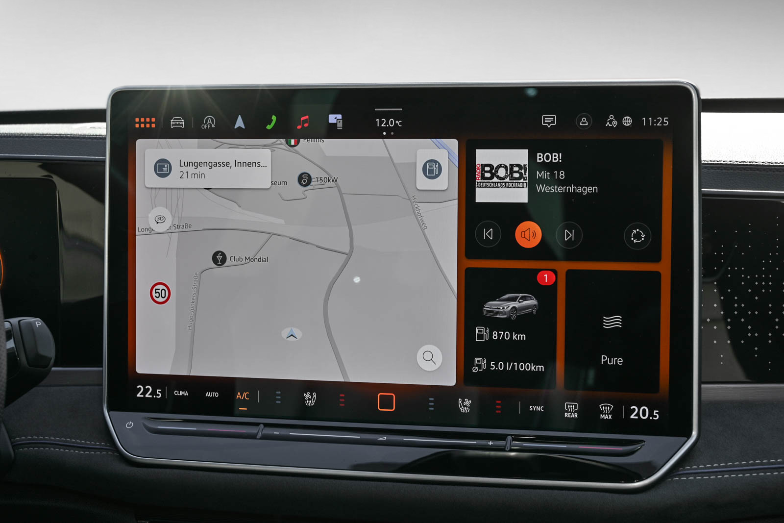 Assistenzpaket 'IQ.DRIVE', Feuerlöscher, Infotainment-System mit 38-cm-Display (15 Zoll), Sitzmittelbahnen der Vordersitze und deräußeren Rücksitzplätze in Leder 'Puglia' gelocht, Gepäcknetz, Anhängevorrichtung anklappbar mit elektrischer Entriegelung inkl. Anhängerrangierassistent Trailer Assist, Panorama-Ausstell-/Schiebedach mit Panoramadach hinten, Sportfahrwerk Karosserie tiefergelegt, AirStop®-Reifen 235/40 R 19, Sprachassistent IDA und elektronische Sprachverstärkung, Reifendruck-Kontrollsystem, Außenspiegel elektrisch anklapp- und beheizbar auf Fahrerseite abblendend Beifahrerspiegelabsenkung und Memory, Kindersicherung elektrisch für Türen hinten vom Fahrersitz aus bedienbar, ergoActive-Sitze vorn mit elektrischer Einstellung Memory Komforteinstieg und verschiebbarer Oberschenkelauflage, Head-up-Display, Standheizung und -lüftung mit Funkfernbedienung und Vorwahluhr, Reifendruck-Kontrollsystem, Technikpaket Insassenschutz 'Plus', Vordersitze mit Massageprogrammen und aktiver Klimatisierung, Dekor-Einlagen, Heckspoiler in Wagenfarbe/Schwarz, Fahrassistent 'Travel Assist' Spurhalteassistent 'Lane Assist' und 'Emergency Assist', Kopf- und Seitenairbags vorn und hinten Center-Airbag, Dachreling schwarz hochglänzend, Multifunktions-Sportlenkrad in Leder beheizbar mit Schaltwippen, 4 Leichtmetallräder 'Leeds' 8 J x 19 inSchwarz Volkswagen R, Frontscheibe in Verbundsicherheitsglas drahtlos beheizbar und infrarot-reflektierend geräuschdämmend, Dachhimmel und Dachpfostenverkleidungen in Mikrovlies 'ArtVelours' in Schwarz, Soundsystem 'Harman Kardon' 12+1 Lautsprecher 700 Watt Gesamtleistung digitaler 16-Kanal-Verstärker Subwoofer, Navigationssystem 'Discover Pro Max', Anhängevorrichtung inkl. Anhängerrangierassistent 'Trailer Assist', Adaptive Fahrwerksregelung DCC Pro inkl.Fahrprofilauswahl, Leeds 8 J x 19 in Schwarz / Dark Graphite Volkswagen R AirStop®-Reifen 235/40 R 19, Gepäckraumboden in 2 Höhen einstellbar, LED-Rückleuchten mit dynamischer Blinkleuchte mit Leiste in Schwarz hochglänzend, Außenspiegelgehäuse in Schwarz lackiert, Zierleisten in Schwarz hochglänzend an den Seitenfenstern, 'Business Premium'-Paket, Winterpaket 'Premium' inkl. Standheizung, Äußere Rücksitzplätze beheizbar zusätzlich zu den beheizbaren Vordersitzen, Stoßfänger im 'R-Line'-Styling mit Akzenten in Schwarz, Verbundsicherheitsglas geräuschdämmendfür Seitenscheiben Heck- und Seitenscheiben hinten abgedunkelt, 230-V-Steckdose im Gepäckraum, R-Line 'Signature', Umgebungsansicht 'Area View' inkl. Rückfahrkamera 'Rear View', Vorbereitet für 'We Connect' und 'We Connect Plus' oder 'VW Connect' und 'VW Connect Plus', Navigationssystem, Abgaskonzept WLTP3 M1 N1-I//EU6EA, Parkassistent 'Park Assist Plus' inkl. Einparkhilfe, Linkslenker, Sonnenblenden mit Make-up-Spiegel beleuchtet auf Fahrer und Beifahrerseite, Multifunktionskamera, Spurwechselassistent 'Side Assist' Ausparkassistent und Ausstiegswarnung, Kraftstoffsystem Diesel, Ladekantenschutz in Edelstahl, Progressivlenkung, Online-Dienst mit OCU mit Head Unit Codierung ohne WFS-Verbund, Geschwindigkeitsbegrenzer mit vorausschauender Regelung, Proaktives Insassenschutzsystem, Wartungsintervallverlängerung, Sportsitze vorn, Kreuzungsassistent, Netztrennwand, Verkehrszeichenerkennung, Kraftstofftank mit 66 l Fassungsvermögen, Digital Cockpit Pro mehrfarbig verschiedene Info-Profile wählbar, Rücksitzlehne asymmetrisch geteilt umklappbar mit Durchlademöglichkeit, Einstiegsleisten vorn und hinten mit 'R-Line' Logo, Doppelton-Signalhorn, Automatische Distanzregelung ACC 'stop & go', Elektronisches Stabilisierungsprogramm und elektromechanischer Bremskraftverstärker, Car2X, Außenspiegel Fahrerseite asphärisch Beifahrerseite konvex, Variant, Kopfstützen vorn im Sitz integriert, IQ.LIGHT - LED-Matrix-Scheinwerfer mit Fernlicht 'Plus' Kurvenfahrlicht und dynamischer Blinkleuchte, Leuchtweitenregulierung dynamisch mit dynamischem Kurvenfahrlicht, 4-Zylinder-Dieselmotor 2 0 l TDI 110 kW, Umfeldbeleuchtung mit Logoprojektion, Typprüfland Deutschland, R-Line Ausstattung, Frontantrieb, Heckscheibenwischer mit Intervallschaltung, Scheibenwaschdüsen vorn automatisch beheizt, Sonnenschutzrollo an den Türscheiben hinten, Textilfußmatten vorn und hinten, 2 USB-C-Schnittstellen vorn 2 USB-C-Ladebuchsen an der Mittelkonsolehinten Ladeleistung bis zu 45 W, Diebstahlwarnanlage mit Innenraumüberwachung Back-up-Horn und Abschleppschutz, Serviceanzeige 30000 km oder 2 Jahre ( flexibel ), Pedale in Edelstahl gebürstet, Innenspiegel automatisch abblendend, Notruf-Service Laufzeit 10 Jahre ab Erstauslieferung Voraussetzung: Verfügbarkeit benötigter Mobilfunknetze, Lendenwirbelstützen vorn pneumatisch einstellbar, 7-Gang-Automatikgetriebe oder DSG Beachtung: Fam. EDF, Berganfahrassistent, Heckklappe mit sensorgesteuerter Öffnung und zeitverzögerter elektrischerSchließung mit Fernentriegelung, Elektronische Parkbremse inkl. Auto-Hold-Funktion, Ambientebeleuchtung, Fußgängererkennung, Schlüsselloses Schließ- und StartsystemKeyless Entry mit SAFE-Verriegelung, Start-Stopp-System mit Bremsenergie-Rückgewinnung, Ablenkungs- und Müdigkeitserkennung, Klimaanlage 'Air Care Climatronic' mit Aktiv-Kombifilter Bedienelementen hinten und 3-Zonen-Temperaturregelung, App-Connect Wireless für Apple CarPlay und Android Auto, ISOFIX-Halteösen für Kindersitze auf denäußeren Rücksitzen sowie auf dem Beifahrersitz i-Size-kompatibel, Telefonschnittstelle 'Comfort' mit induktiver Ladefunktion Ladeleistung bis zu 15 W, Memory-Funktion für Parkassistent, Digitaler Radioempfang DAB+, Abbiegebremsfunktion und Ausweichunterstützung, Nebelschlusslicht beidseitig Rückfahrlicht beidseitig, Fahrlichtschaltung automatisch mit LED-Tagfahrlicht sowie Begrüßungs- und Verabschiedungslicht, 4-Zylinder-Dieselmotor 2 0 l, Notbremsassistent 'Front Assist' mit Fußgänger- und Radfahrererkennung, Mittelarmlehne hinten verschiebbar mit Becherhaltern und A