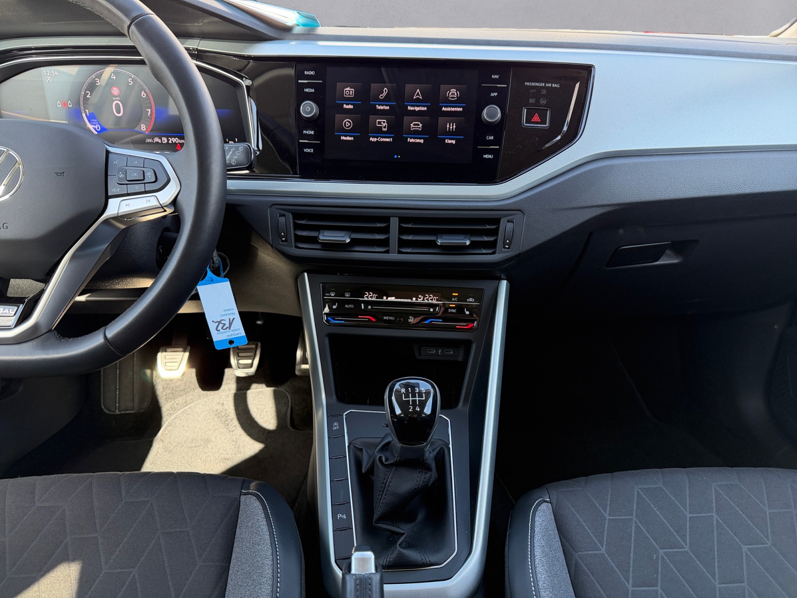 Navigationssystem 'Discover Media', Vorbereitet für 'VW Connect' und 'VW Connect Plus', 'GOAL', Automatische Distanzregelung ACC mit Geschwindigkeitsbegrenzer, App-Connect Wireless für Apple CarPlay und Android Auto, Verkehrszeichenerkennung, Fahrassistent 'Travel Assist' und Spurhalteassistent 'Lane Assist', Klimaanlage 'Air Care Climatronic' mit Aktiv-Kombifilter und 2-Zonen-Temperaturregelung, Nebelscheinwerfer und Abbiegelicht, Fernlichtassistent 'Light Assist', Sitzbezüge für Sondermodell, Telefonschnittstelle mit induktiver Ladefunktion, Chrom-Applikationen an Spiegeleinstell- und Fensterheberschaltern an Auströmern vorn auf Fahrer- und Beifahrerseite, Notbremsassistent 'Front Assist' (für automatische Distanzregelung ACC bis 210 km/h), Seitenscheiben hinten und Heckscheibe abgedunkelt, Ambientebeleuchtung, Ganzjahresreifen 185/65 R 15, 6 Lautsprecher, LED-Rückleuchten, Reifenkontrollanzeige, 3 Zyl.Ottomotor 1 0L Aggr. 05C.B, Life, Multifunktionslenkrad in Leder, Einparkhilfe - Warnsignale bei Hindernissen im Front- und Heckbereich, Digital Cockpit mehrfarbig verschiedene Info-Profile wählbar, Frontantrieb, Fußgänger- und Radfahrererkennung, Heckscheibenwischer mit Intervallschaltung, 2 USB-C-Schnittstellen vorn 2 USB-C-Ladebuchsen an der Mittelkonsole hinten Ladeleistung bis zu 45 W, Außenspiegel elektrisch einstell- anklapp- und beheizbar mit Beifahrerspiegelabsenkung, Gepäckraumboden in 2 Höhen einstellbar für ebene Ladefläche, Notruf-Service Laufzeit 10 Jahre ab Erstauslieferung Voraussetzung: Verfügbarkeit benötigter Mobilfunknetze, Mittelarmlehne vorn längseinstellbar mit Ablagebox, Berganfahrassistent, Rücksitzbank ungeteilt Lehne asymmetrisch geteilt umklappbar, Sicherheitsoptimierte Kopfstützen vorn, LED-Scheinwerfer mit LED-Tagfahrlicht, Zentralverriegelung ohne SAFE-Verriegelung mit Funkfernbedienung und 2 Funkklappschlüsseln, Kraftstoffsystem Otto-Einspritzer, Start-Stopp-System mit Bremsenergie-Rückgewinnung, Ablenkungs- und Müdigkeitserkennung, 3-Zylinder-Ottomotor 1 0 l TSI 70 kW, Dachhimmel in Ceramique, ISOFIX-Halteösen für Kindersitze auf den äußeren Rücksitzen sowie auf dem Beifahrersitz i-Size-kompatibel, Kopfairbags vorn und hinten Seitenairbags vorn Center-Airbag, Lenksäule mit Höhen- und Längseinstellung, 5-Gang-Schaltgetriebe, Leuchtweitenregulierung, Digitaler Radioempfang DAB+, Fahrlichtschaltung automatisch mit 'Coming home'- und 'Leaving home'-Funktion, Elektronisches Stabilisierungsprogramm mit Gegenlenkunterstützung ABS ASR EDS und MSR, Das WeltAuto