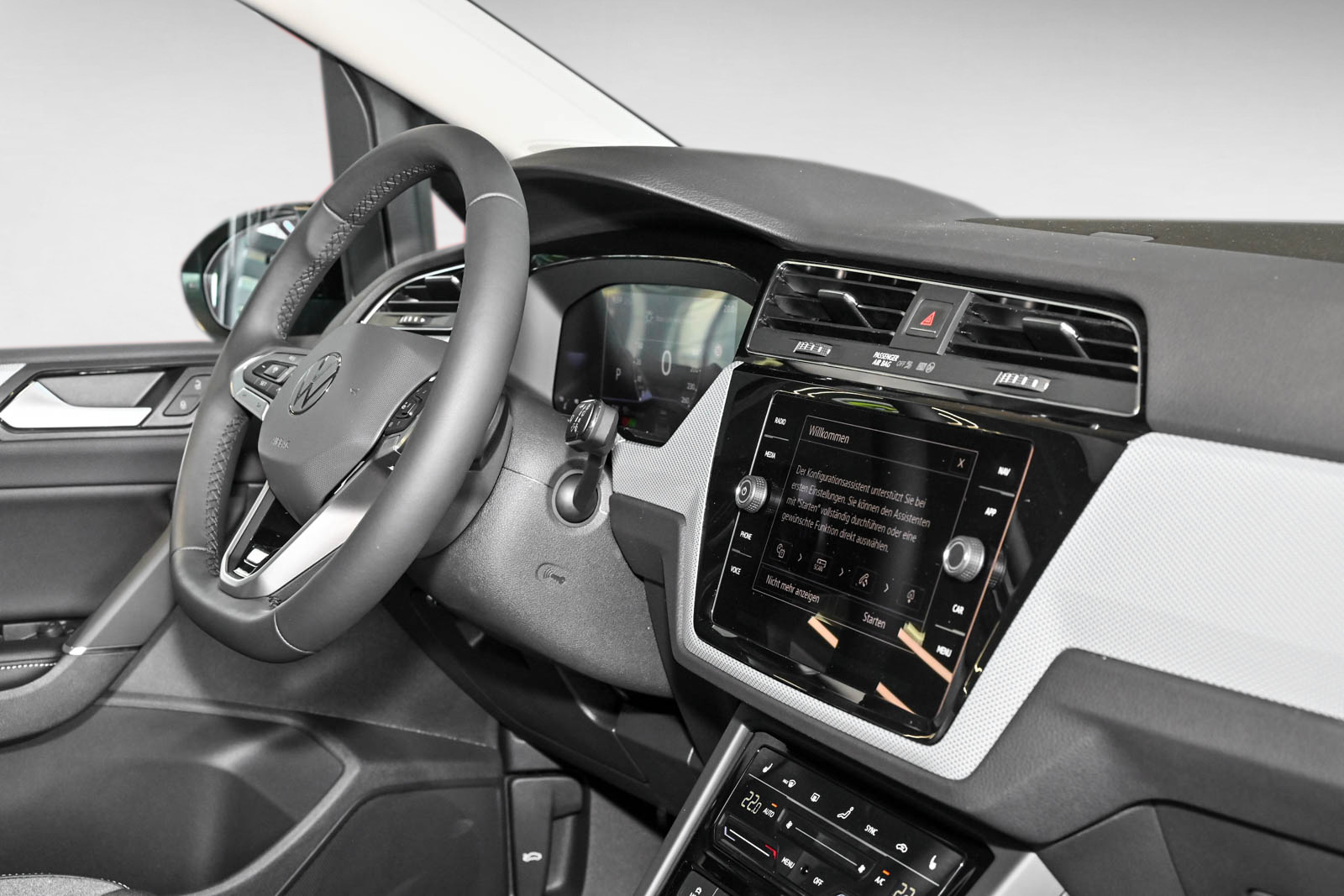 Winterräder 'Karlstad' (zusätzlich). 4 Leichtmetallräder 6.5 J x 16. AirStop®-Winterreifen 205/60 R 16 H, Netztrennwand, 12-V-Steckdose im Gepäckraum, LED-Rückleuchten, Rückfahrkamera 'Rear View' für 'Trailer Assist', Anhängevorrichtung inkl. Anhängerrangierassistent 'Trailer Assist', 2 Einzelsitze in der 3.Sitzreihe. im Gepäckraumboden versenkbar, Family-Paket, IQ.LIGHT - LED-Scheinwerfer, R-Line 'Exterieur' für Sondermodelle. Volkswagen R, 1 Kindersitz mit Seitenhalt und Seitenkopfstütze. herausklappbar. rechts in der 2. Sitzreihe, Infotainment-Paket 'Discover Media', 2 USB-C-Schnittstellen vorn. 2 USB-C-Ladebuchsen an der Mittelkonsole hinten Ladeleistung bis zu 45 W, Auslieferung auf Winterrädern, Radstand, Doppelkupplungsgetriebe DQ200, Kraftstoffbehälter, Entfall des Schriftzugs für die Motorbezeichnung auf der Gepäckraumklappe, Abgasendrohr hinten (Standard), Mit Elektrische Lenksäulenverriegelung (ELV), Textilfußmatten vorn und hinten, Bordliteratur in Deutsch (Deutschland), Gewichtsbereich 9 nur Einbausteuerung keine Bedarfsprognose, Kraftstoffsystem Otto-Einspritzer, Elektronisches Stabilisierungsprogramm mit Gegenlenkunterstützung. ABS. ASR. EDS. MSR und Gespannstabilisierung, Aktivkohlebehälter (EVAP), Spezielles Typschild für EG für M1-Pkw, Tire Mobility Set: 12-Volt-Kompressor und Reifendichtmittel, Servolenkung elektromechanisch. geschwindigkeitsabhängig geregelt, Abdeckungen für Leichtmetallräder, Bordwerkzeug,Verbandtasche. Warndreieck und Warnweste, Klapptische an den Rückseiten der Vordersitze. neigungseinstellbar, Handschuhfach mit Kühlmöglichkeit, Frontantrieb, Serienkraftstoff-Erstbefüllung, Scheibenbremsen vorn,Scheibenbremsen hinten, Multifunktionslenkrad in Leder. mit Schaltwippen, Fahrprofilauswahl, Allergenfilter, ISOFIX-Halteösen (Vorrichtung zur Befestigung von Kindersitzen auf den Rücksitzen), Volldach, Beifahrersitzlehne komplett umklappbar. mit Tisch- und Durchladefunktion, Dreipunkt-Automatiksicherheitsgurte vorn mit Höheneinstellung und Gurtstraffer, Gepäckraumabdeckung mit Komfortöffnung. auszieh-. herausnehm- und verstaubar, 3 Dreipunkt-Automatiksicherheitsgurte mit Gurtstraffer hinten, Entriegelung Heckklappe/Deckel hinten von außen, Frontscheibe in Verbundsicherheitsglas. wärme- und geräuschdämmend, Schlüsselloses Startsystem 'Keyless Start' ohne Safe-Sicherung, Innenspiegel automatisch abblendend, Ablagefach mit Deckel auf der Instrumententafel, Airbag für Fahrer und Beifahrer. mit Beifahrerairbag-Deaktivierung. inkl. Knie-Airbag auf der Fahrerseite, Abgaskonzept. WLTP3 M1. N1-I//EU6EA, Kopfairbagsystem für Front- und Fondpassagiere inkl. Seitenairbags vorn, Zierleisten in Schwarz an den Seitenfenstern, Trägerfrequenz 433.92 bis 434.42 MHz,Außenspiegel rechts. konvex, Außenspiegel auf Fahrerseite asphärisch, Make-up-Spiegel beleuchtet in den Sonnenblenden, Sicherheitsoptimierte Kopfstützen vorn. längs- und höheneinstellbar,Mittelarmlehne vorn höhen- und längseinstellbar. mit herausnehmbarer Ablagebox. 2 Ausströmer hinten,Notbremsassistent 'Front Assist' (für automatische Distanzregelung ACC bis 210 km/h), Gepäckmanagement-Paket mit auf Schienen fixierbarem Gepäcknetz, Dachhimmel in Storm Grey, Schalthebelknauf in Leder, Schalthebelverkleidung f.Automatschaltung, Außenspiegel elektrisch anklappbar.auf Fahrerseite abblendend.Umfeldbeleuchtung und Beifahrerspiegelabsenkung,Digital Cockpit. mehrfarbig. verschiedene Info-Profile wählbar, Reifenkontrollanzeige, Fahrzeugklassen-Differenzierung -5T0-, Start-Stopp-System mit Bremsenergie-Rückgewinnung, Ablagefächer in der Dachkonsole, Lendenwirbelstützen vorn, Proaktives Insassenschutzsystem in Verbindung mit 'Front Assist' und 'Side Assist', Spurwechselassistent 'Side Assist' und Ausparkassistent, Radio, Drehstromgenerator 140 A, Fahrlichtschaltung automatisch. mit Tagfahrlicht. 'Leaving home'-Funktion und manueller 'Coming home'-Funktion, 8 Lautsprecher, Automatische Distanzregelung ACC 'stop & go'. mit Geschwindigkeitsbegrenzer, Nebelschlussleuchte,Nicht Heissland, Diversity-Antenne für FM-Empfang,Gepäckraumbeleuchtung zusätzlich. herausnehmbar und als Taschenlampe nutzbar,Nichtraucherausführung - Ablagefach und 12-V-Steckdose vorn, Warnton und -leuchte für nicht angelegte Gurte vorn. Warnleuchte für nicht angelegte Gurte hinten, Betriebsspannung 12 V, Telefonschnittstelle mit induktiver Ladefunktion, Komfortausstattung, Rechtsverkehr, Typprüfland Deutschland, Bauteilesatz ohne länderspezifische Bauvorschrift, Betriebserlaubnis Nachtrag, 4-Zylinder-Ottomotor 1.5 l TSI. 110 kW,ECO-Funktion, Online-Dienst. mit OCU. mit Head Unit Codierung. ohne WFS-Verbund, Ablenkungs- und Müdigkeitserkennung, Regionscode ' ECE ' für Radio, Kein Sonderfahrzeug.Standard-Ausführung, Normal-Lackierung, 7-Gang-Automatikgetriebe oder DSG Beachtung: Fam. EDF, Fahrzeuge ohne besonderen Produktaufwertungsmaßnahmen, Batterie 420A (70Ah), MPV, Kältemittel R1234yf, Kennzeichenbeleuchtung in LED-Technik,Linkslenker, Federbereich 18 nur Einbausteuerung keine Bedarfsprognose, 4 Zyl.Ottomotor 1.5L Aggr. 05E.D, Mit UNECE CS (R155) ohne SU (R156), Batterie/Generator Kapazität Standard, Notruf-Service. Laufzeit 10 Jahre ab Erstauslieferung. Voraussetzung: Verfügbarkeit benötigter Mobilfunknetze, Komfortsitze vorn, Wartungsintervallverlängerung,Serviceanzeige 30000 km oder 2 Jahre ( flexibel ), Ausströmer vorn und Lichtdrehschalter mit Chromeinfassung, Schubladen unter den Vordersitzen, Verkehrszeichenerkennung, Digitaler Radioempfang DAB+, Kombi-Instrument mit elektronischem Tachometer. Kilometer- und Tageskilometerzähler. Drehzahlmesser, Elektronische Parkbremse inkl. Auto-Hold-Funktion, Reifen ohne Festlegung der Reifenmarke, Fußgänger- und Radfahrererkennung sowie aktive Frontklappe,